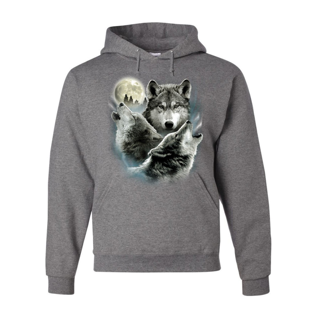WOLF PACK HOWLING UP TO THE MOON howling wolf pack hoodie wild wilderness animals nature moon sweatshirt gray