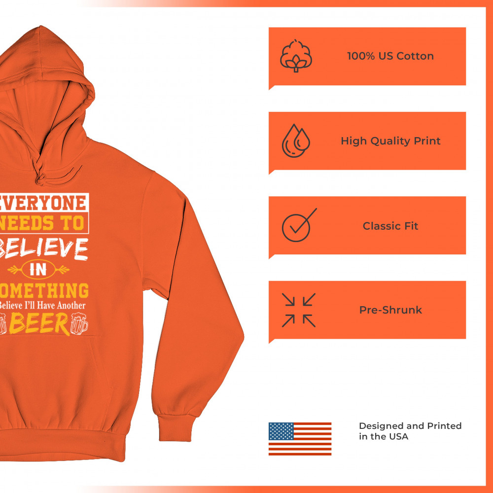 Add some humor to your wardrobe with our "Everyone Needs to Believe in Something, I Believe I'll Have Another Beer" design. Featuring a witty slogan and beer-themed graphics, this design is perfect for casual outings, beer festivals, and social gatherings. Ideal for beer lovers and anyone who enjoys a good laugh, it makes a fantastic gift for friends and family. Celebrate your love for beer and good times with this fun and playful design!