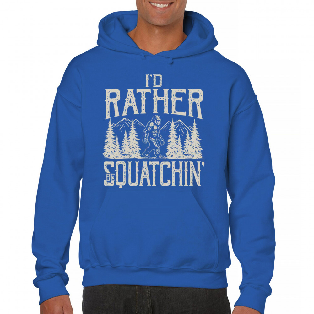 "I’d Rather Be Squatchin’" – A bold design for Bigfoot fans and outdoor adventurers, featuring Sasquatch in a wilderness setting. Perfect for hikers and cryptid enthusiasts!