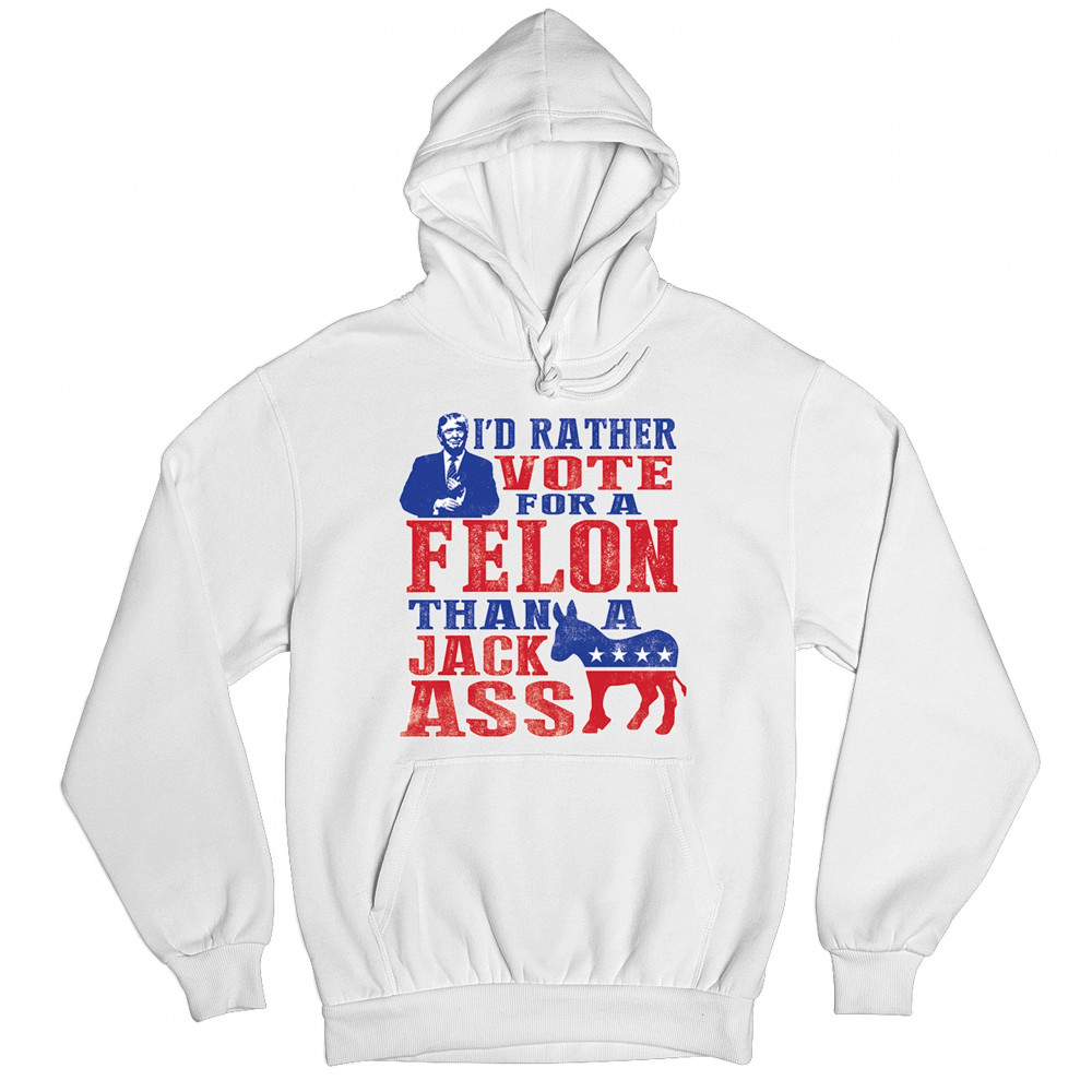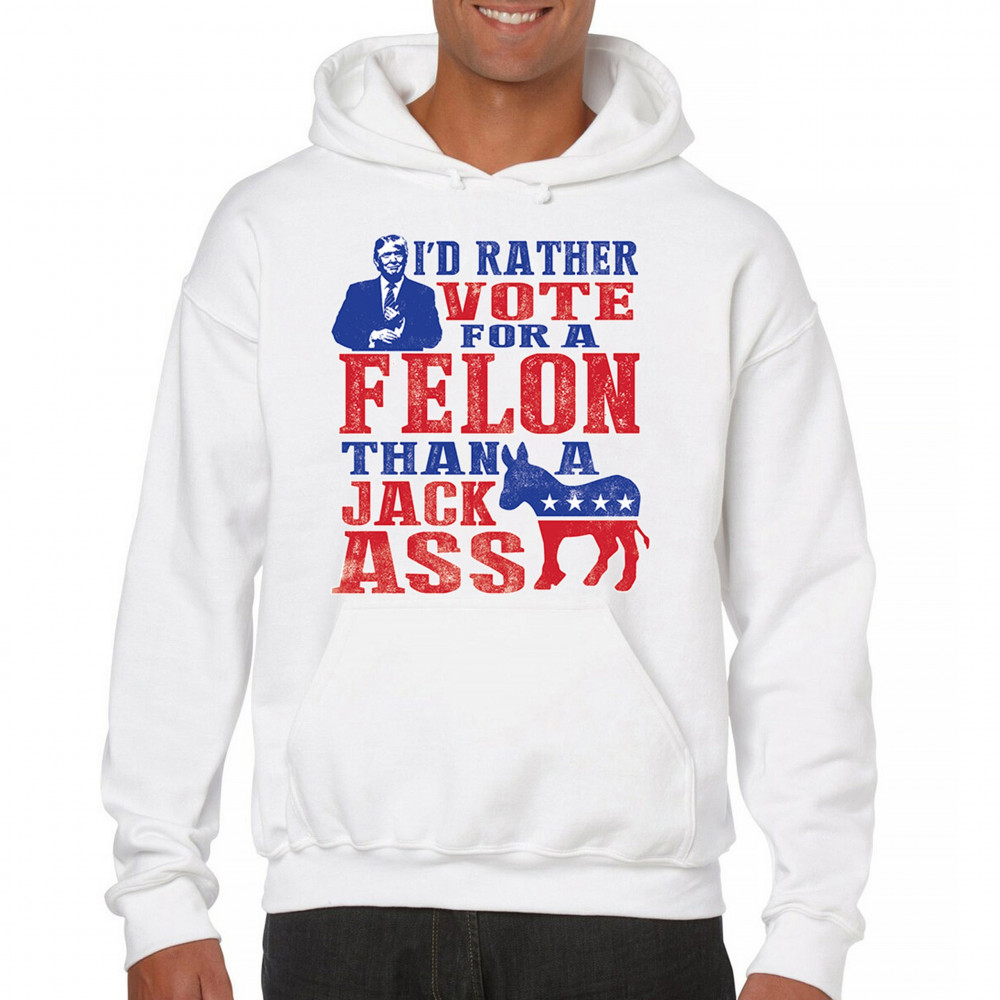 Boldly express your support with the "I'd Rather Vote For A Felon Than A Jackass" design. Perfect for rallies, it showcases loyalty to Trump and JD Vance.