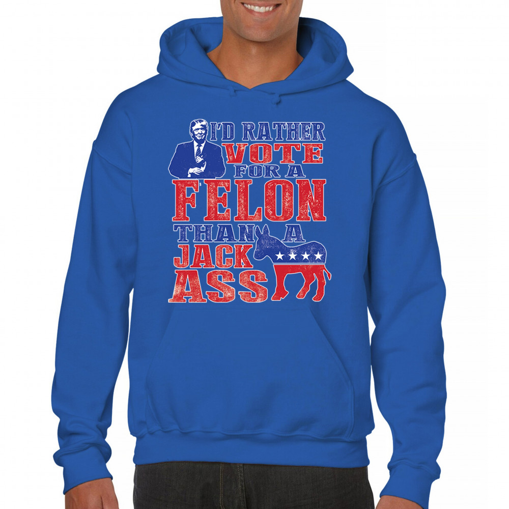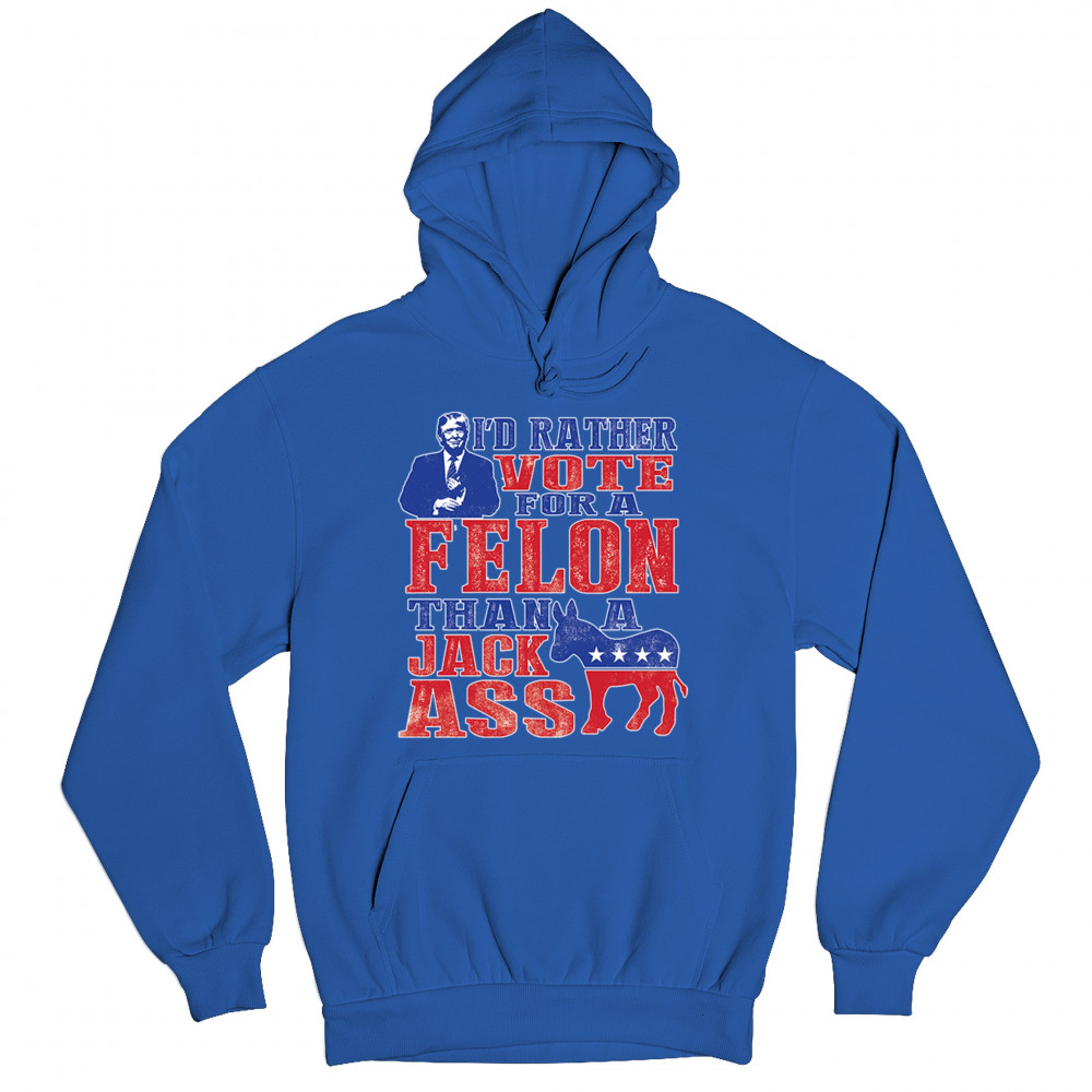 Boldly express your support with the "I'd Rather Vote For A Felon Than A Jackass" design. Perfect for rallies, it showcases loyalty to Trump and JD Vance.