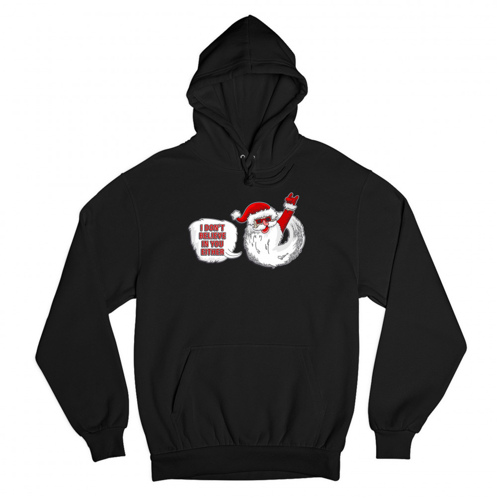 I DON'T BELIEVE IN YOU EITHER sweatshirt santa claus merry christmas hoodie black