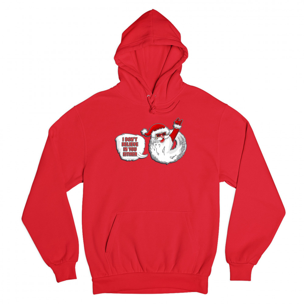 I DON'T BELIEVE IN YOU EITHER sweatshirt santa claus merry christmas hoodie red