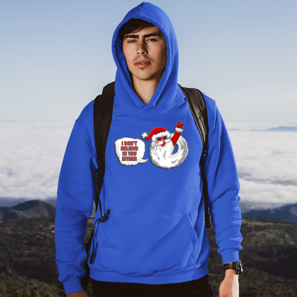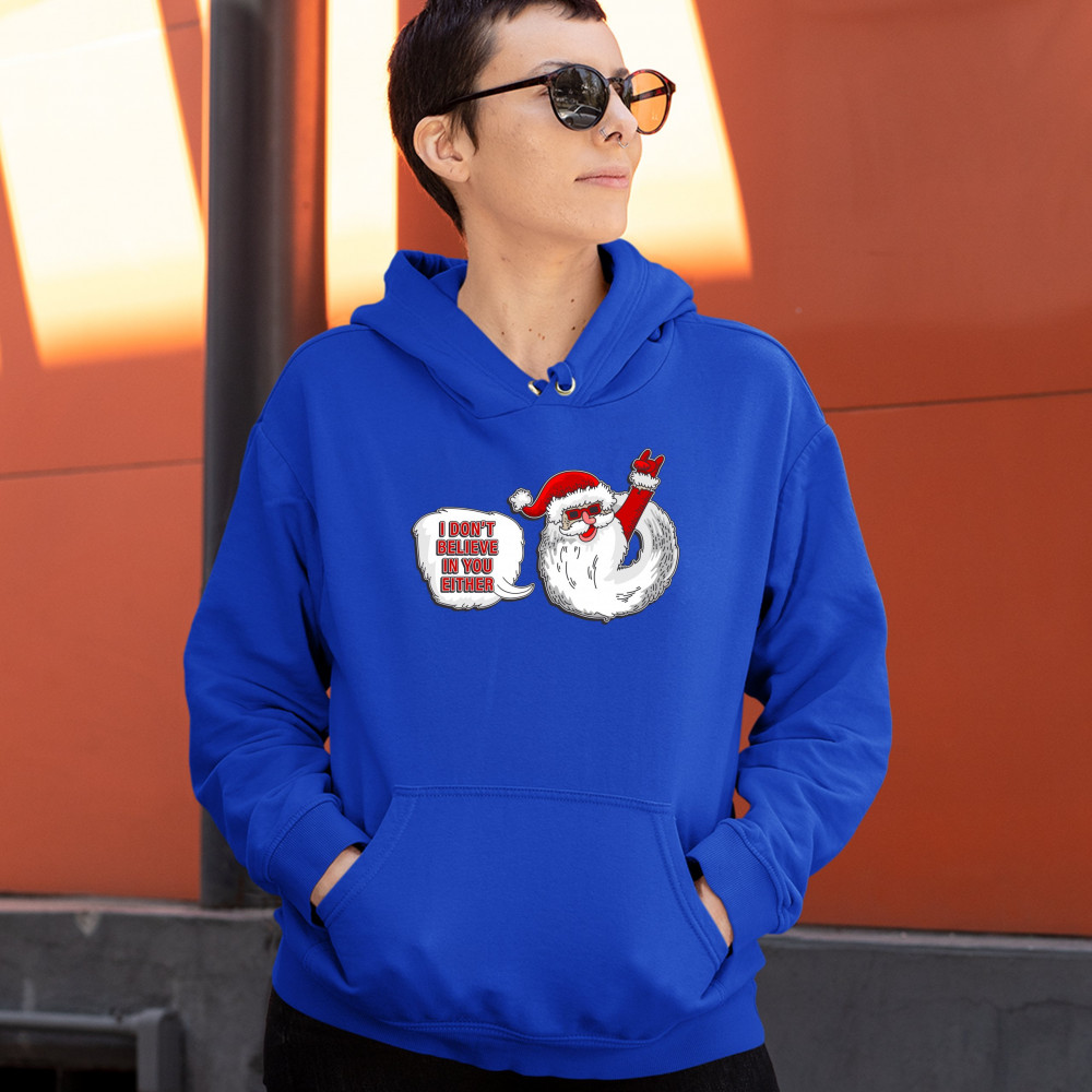 I DON'T BELIEVE IN YOU EITHER sweatshirt santa claus merry christmas hoodie royal blue