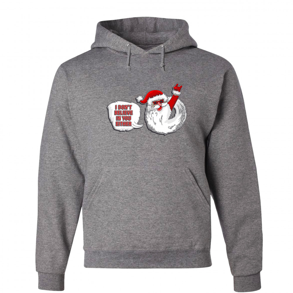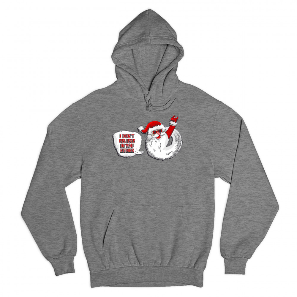I DON'T BELIEVE IN YOU EITHER sweatshirt santa claus merry christmas hoodie gray