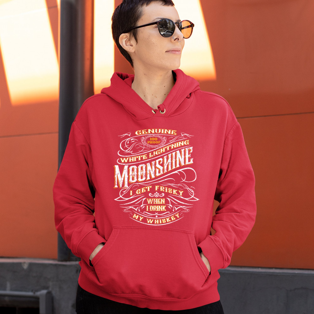 I GET FRISKEY WHEN I DRINK MY WHISKEY sweatshirt genuine moonshine hoodie red