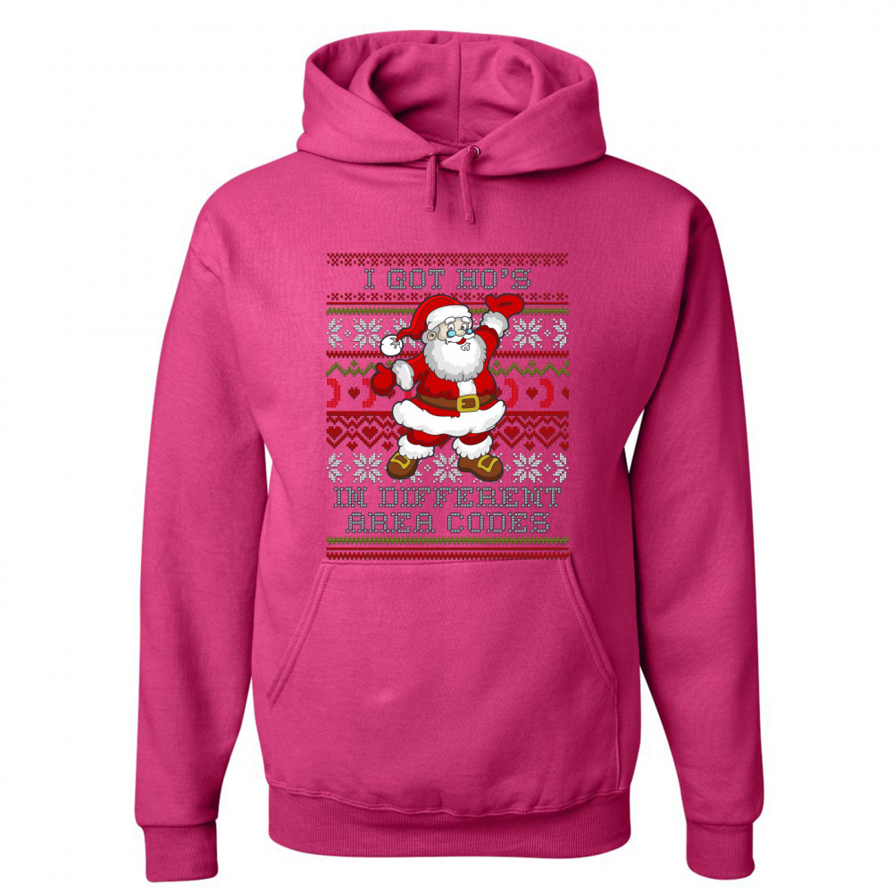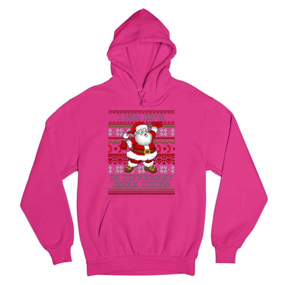 I GOT HO'S IN DIFFERENT AREA CODES sweatshirt santa claus ugly sweater hoodie pink