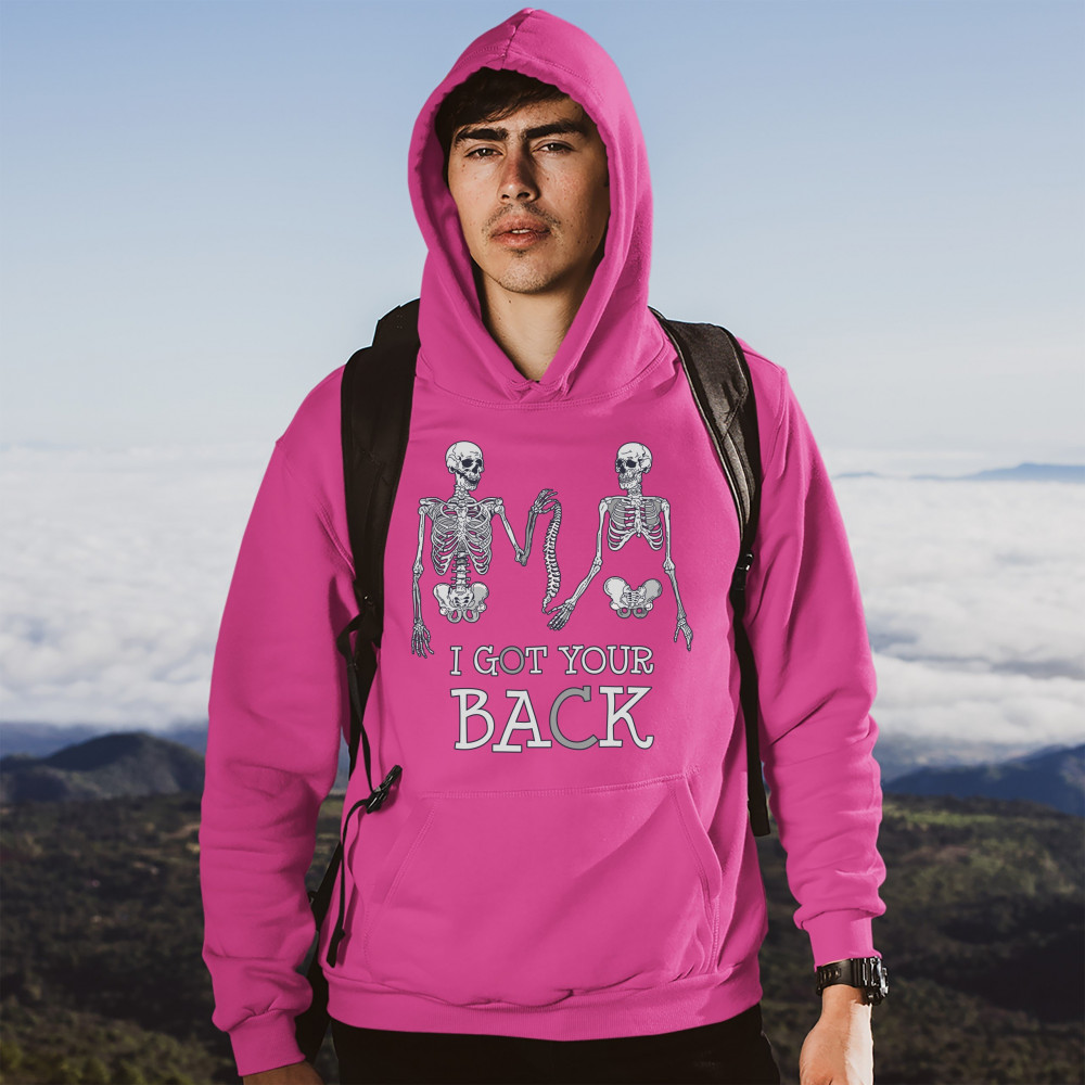 I GOT YOUR BACK sweatshirt happy halloween spooky skeletons hoodie pink
