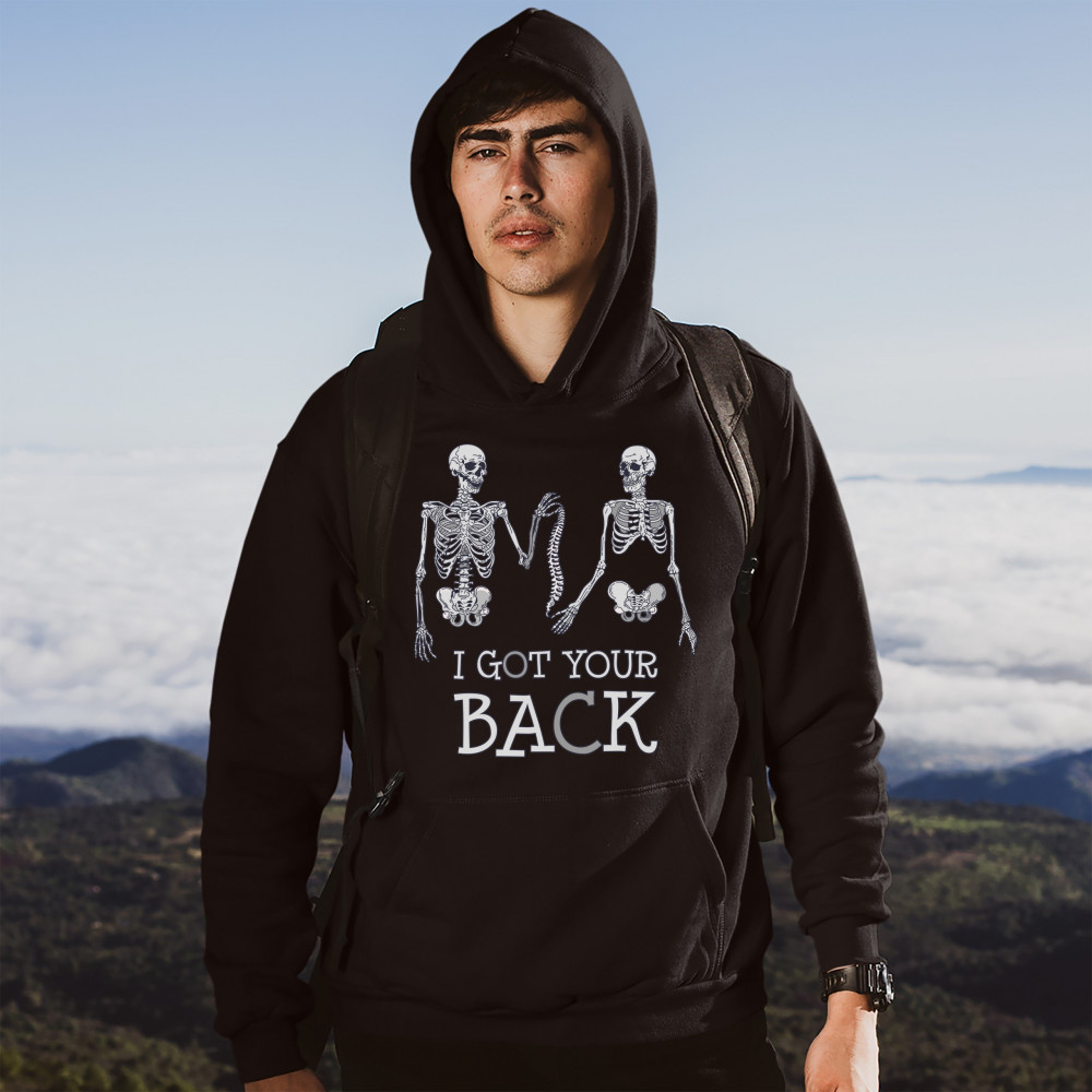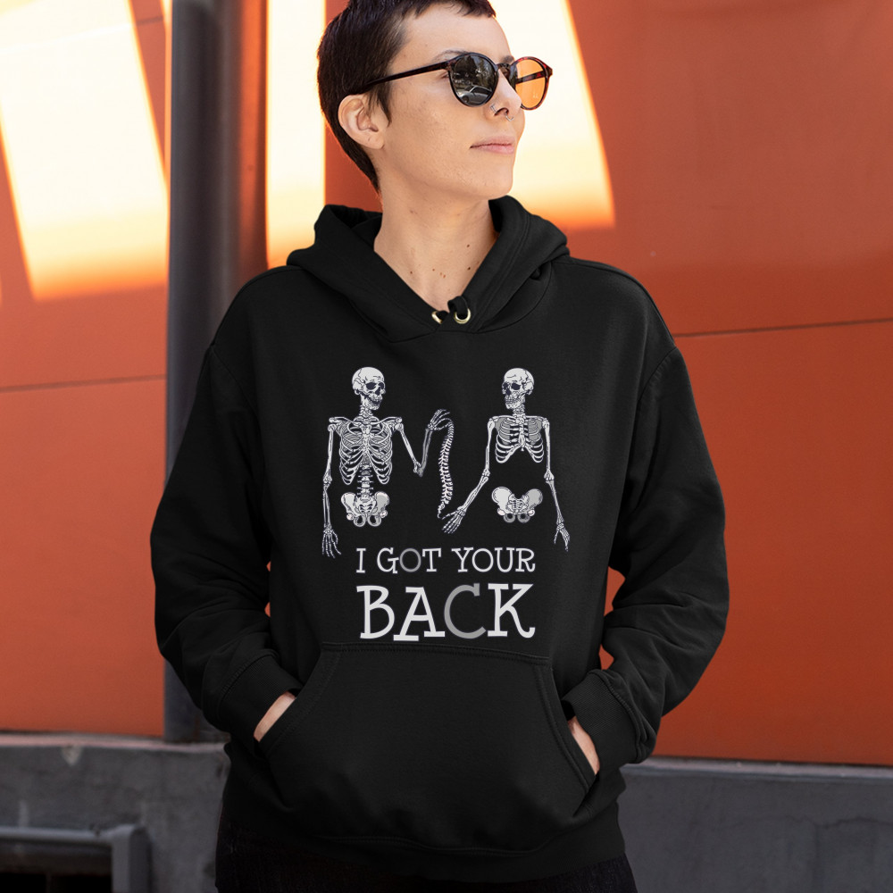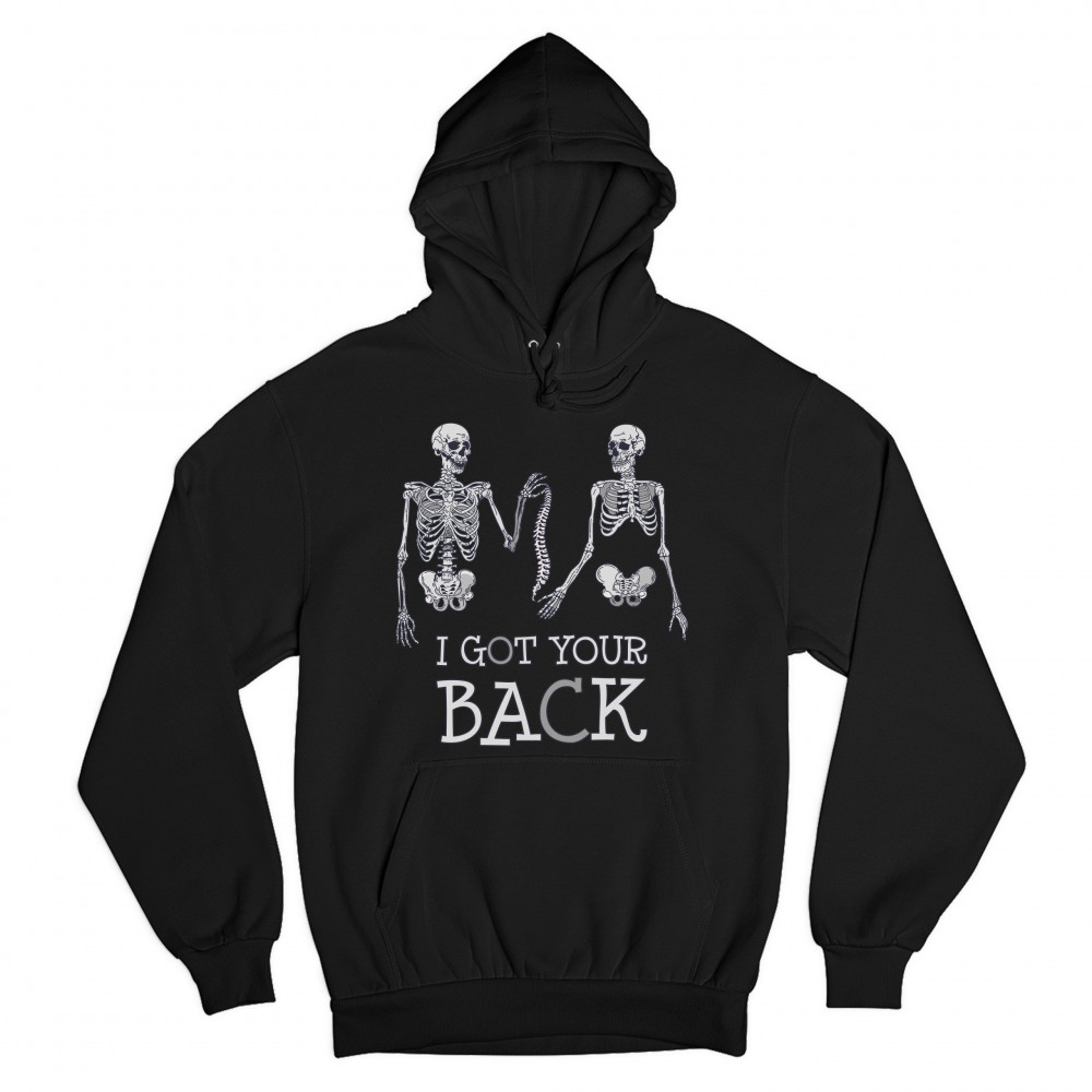 I GOT YOUR BACK sweatshirt happy halloween spooky skeletons hoodie black