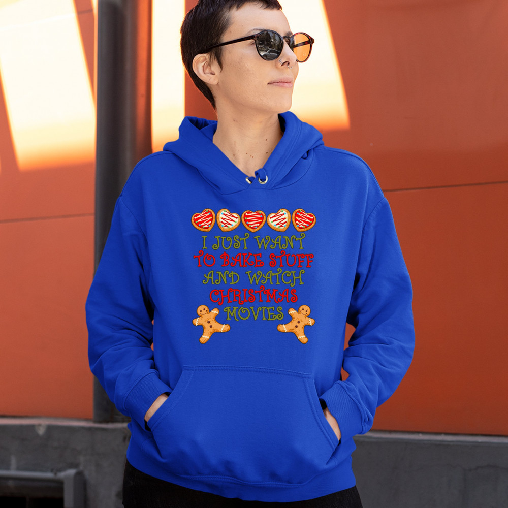 I JUST WANT TO BAKE STUFF AND WATCH CHRISTMAS MOVIES sweatshirt xmas hoodie royal blue