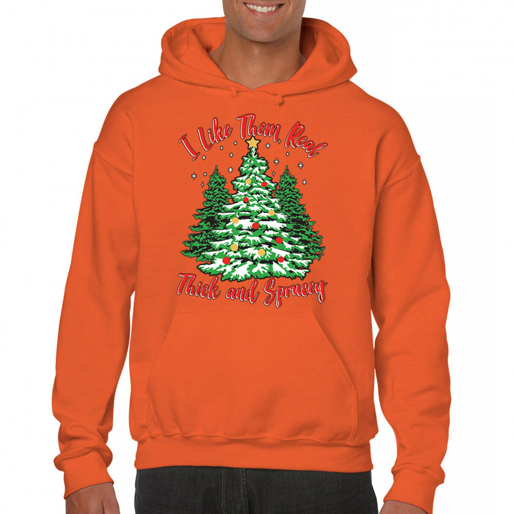 Enjoy the holiday season with our "I Like Them Real, Thick, and Sprucey" Christmas tree design, perfect for festive gatherings and holiday gifting!