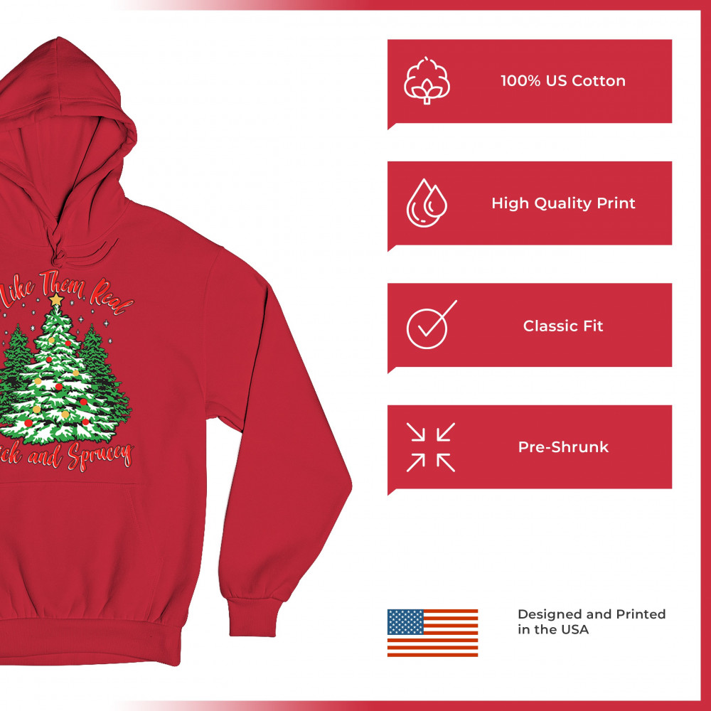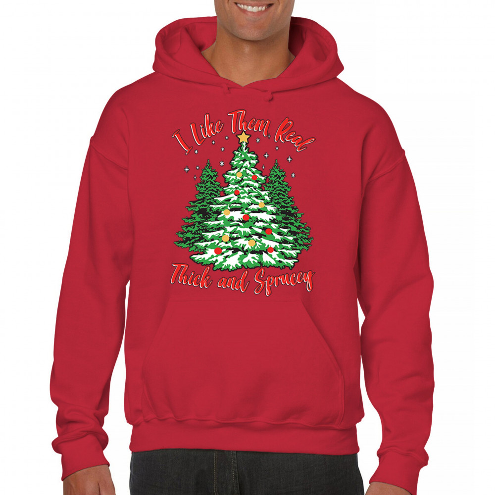Enjoy the holiday season with our "I Like Them Real, Thick, and Sprucey" Christmas tree design, perfect for festive gatherings and holiday gifting!