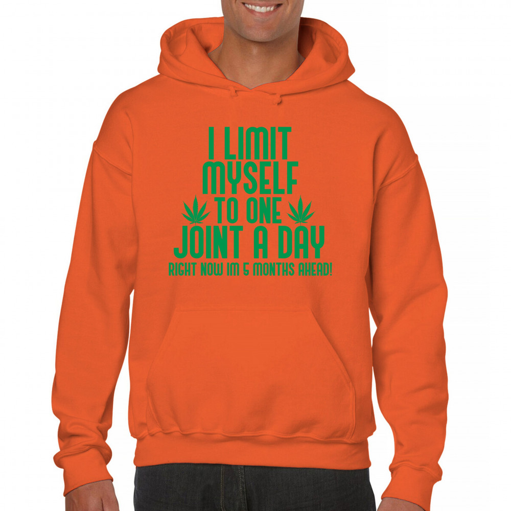 I LIMIT MYSELF TO 1 JOINT A DAY unisex hoodie funny 420 weed marijuana orange
