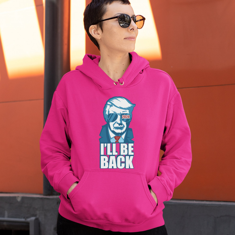 I'LL BE BACK DONALD TRUMP 2024 sweatshirt take america back two terms hoodie pink
