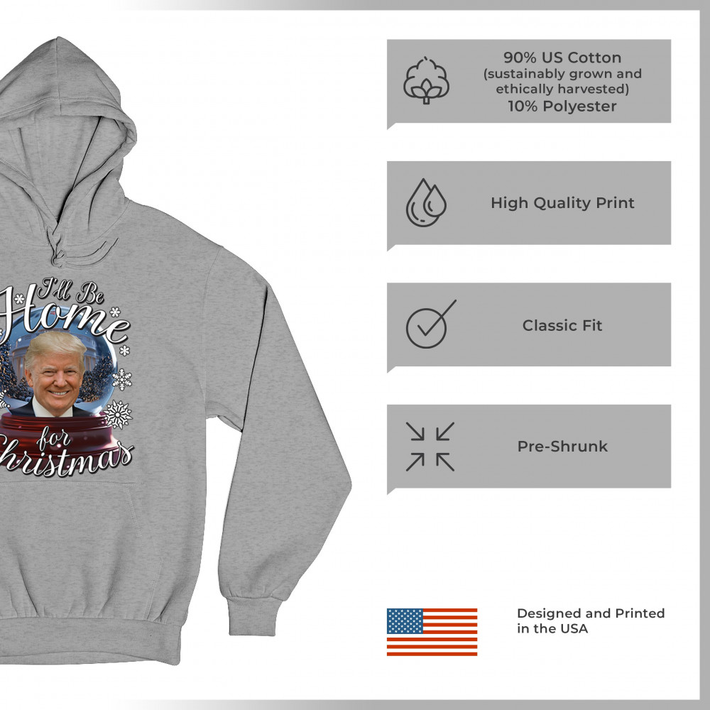 Get ready for the ultimate blend of holiday cheer and American pride with this "I'll Be Home for Christmas" design featuring Donald J. Trump in a festive snow globe. Perfect for gifts, holiday parties, or cozy mornings, this standout piece celebrates the season with style. Whether paired with matching pajamas or a cozy sweatshirt, it's a perfect way to add patriotic charm to your Feliz Navidad celebrations or office gatherings.