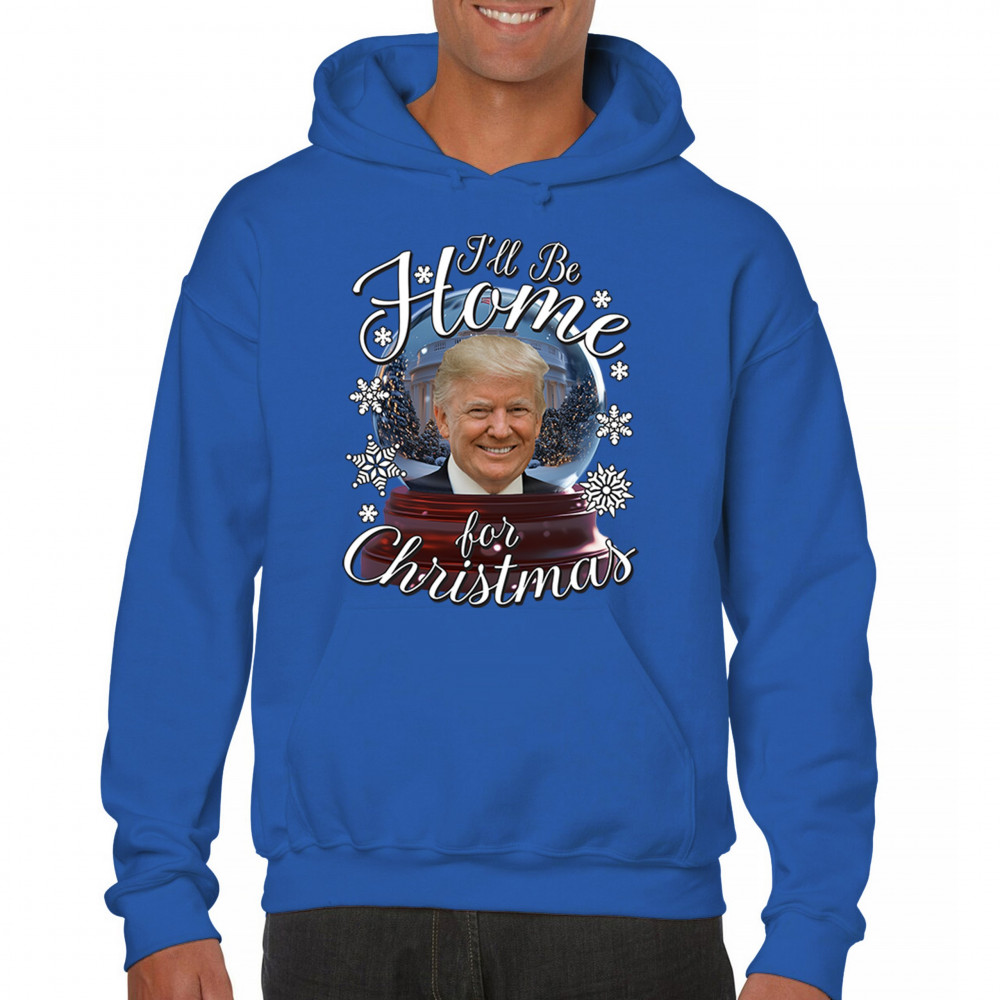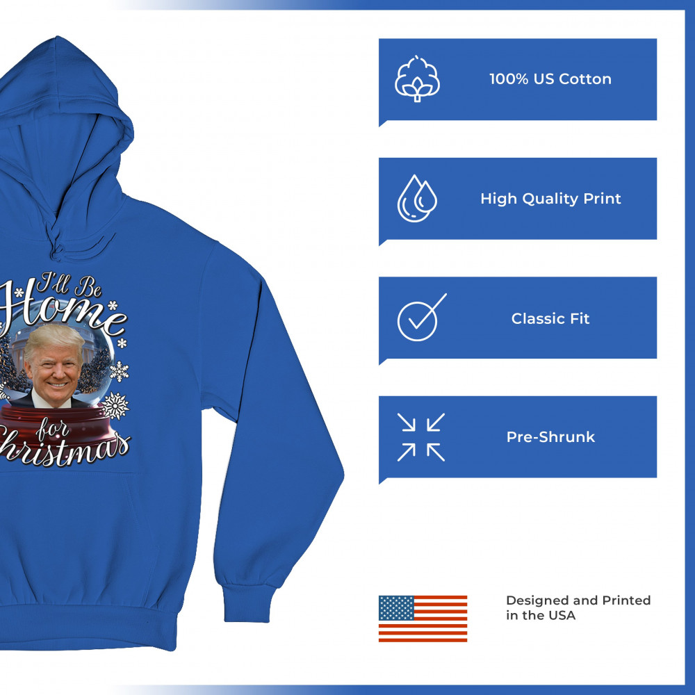 Get ready for the ultimate blend of holiday cheer and American pride with this "I'll Be Home for Christmas" design featuring Donald J. Trump in a festive snow globe. Perfect for gifts, holiday parties, or cozy mornings, this standout piece celebrates the season with style. Whether paired with matching pajamas or a cozy sweatshirt, it's a perfect way to add patriotic charm to your Feliz Navidad celebrations or office gatherings.