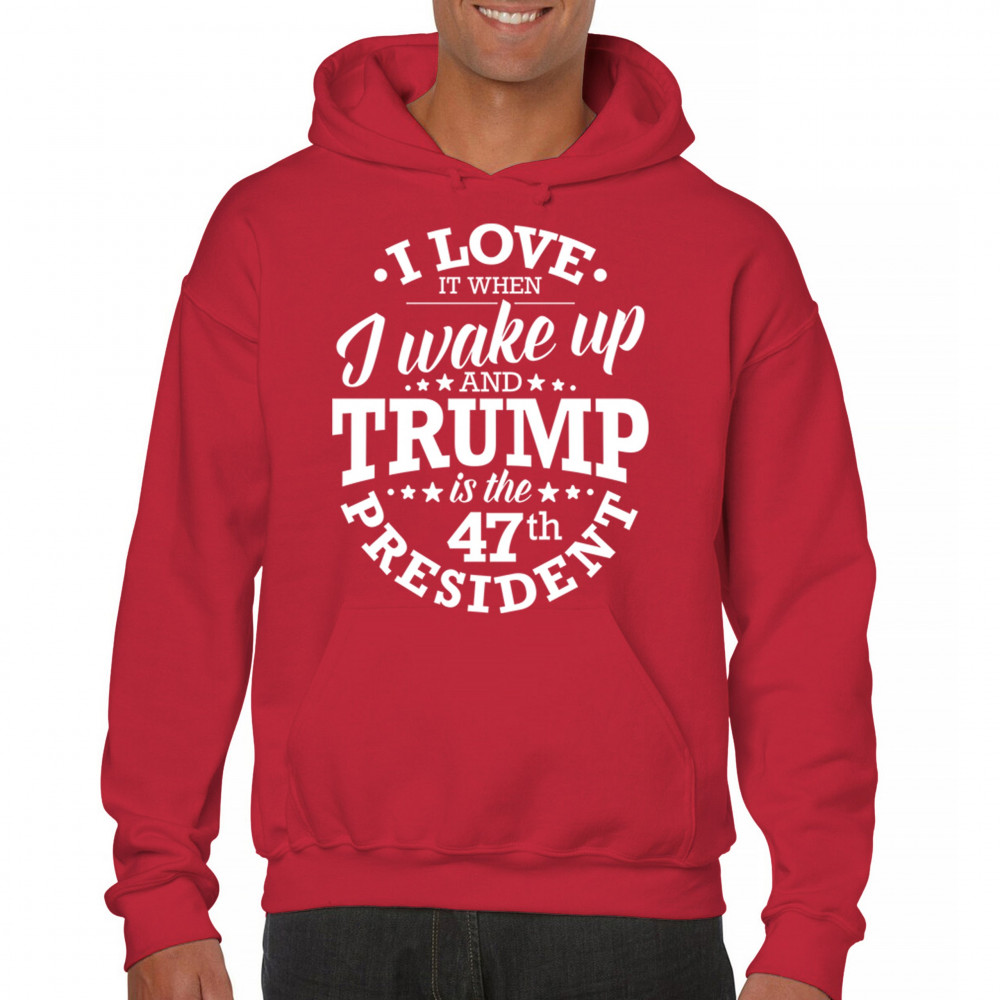 This "I Love It When I Wake Up and Trump is the 47th President" design is the ultimate expression of support for Donald J. Trump and his vision for America. Join the ranks of proud conservatives, Republicans, and America First advocates who are excited about the 47th President’s leadership. Celebrate the Red Wave and stay true to the values of freedom and strength that Trump embodies. Perfect for rallies, gatherings, and everyday patriotic wear.