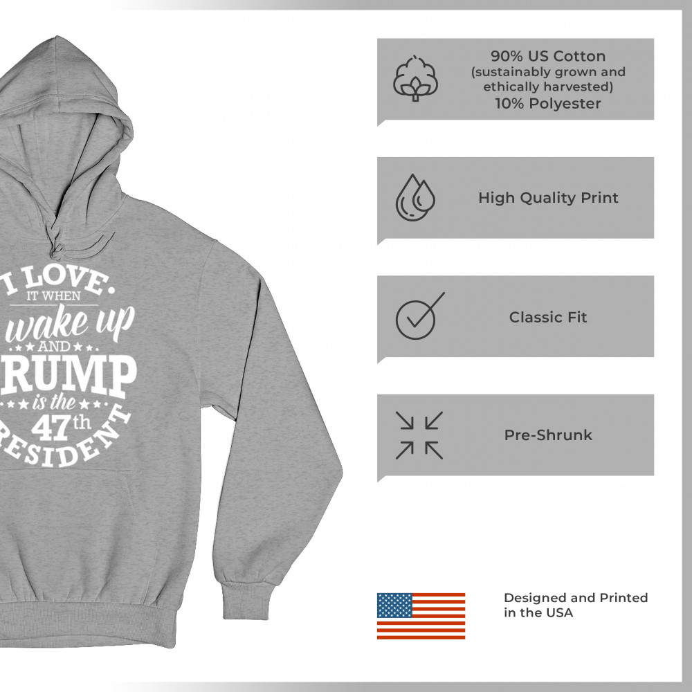 This "I Love It When I Wake Up and Trump is the 47th President" design is the ultimate expression of support for Donald J. Trump and his vision for America. Join the ranks of proud conservatives, Republicans, and America First advocates who are excited about the 47th President’s leadership. Celebrate the Red Wave and stay true to the values of freedom and strength that Trump embodies. Perfect for rallies, gatherings, and everyday patriotic wear.
