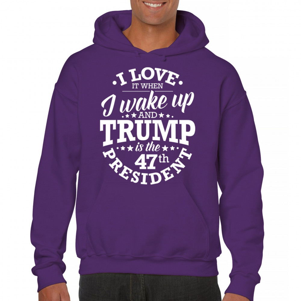 This "I Love It When I Wake Up and Trump is the 47th President" design is the ultimate expression of support for Donald J. Trump and his vision for America. Join the ranks of proud conservatives, Republicans, and America First advocates who are excited about the 47th President’s leadership. Celebrate the Red Wave and stay true to the values of freedom and strength that Trump embodies. Perfect for rallies, gatherings, and everyday patriotic wear.