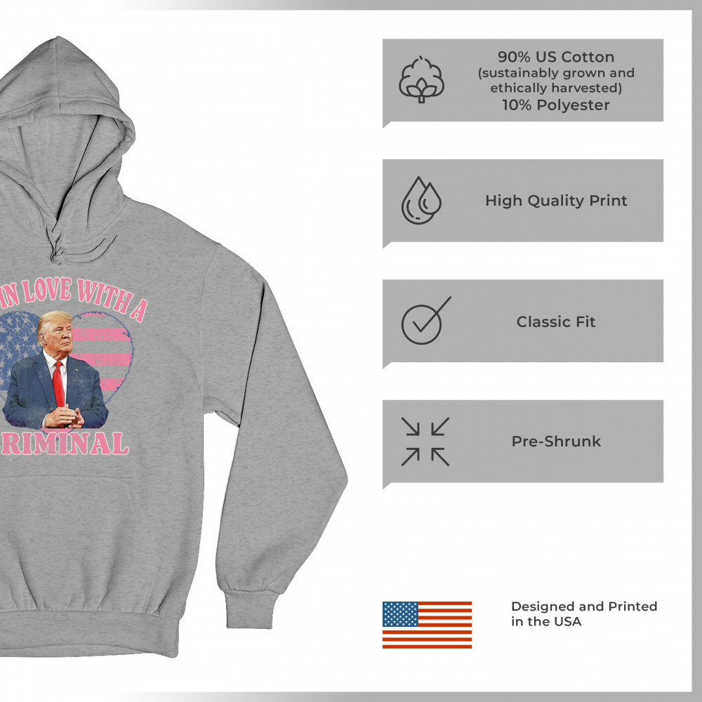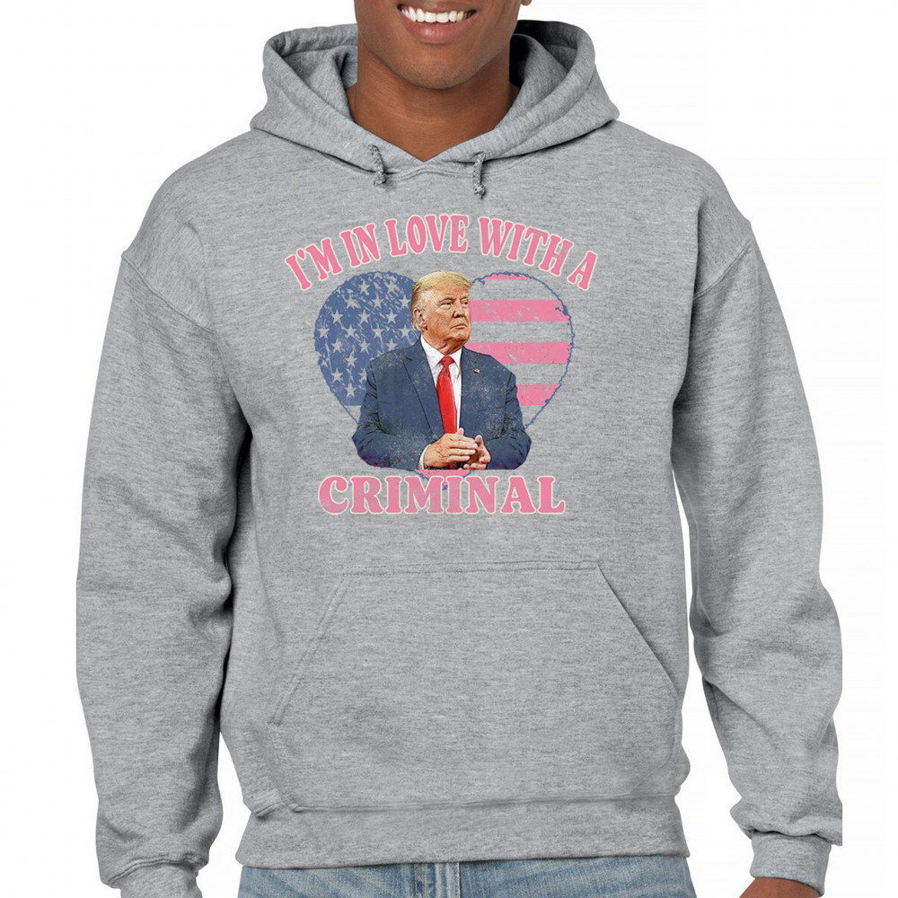 Support Trump with this "I'm in Love with a Criminal" design, embodying conservative values and America First ideals. Perfect for rallies and daily expression.
