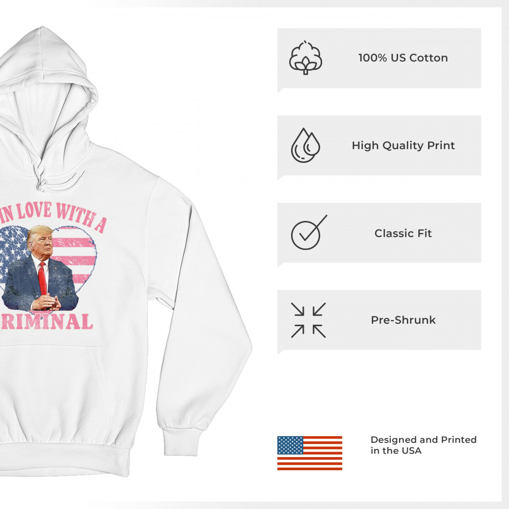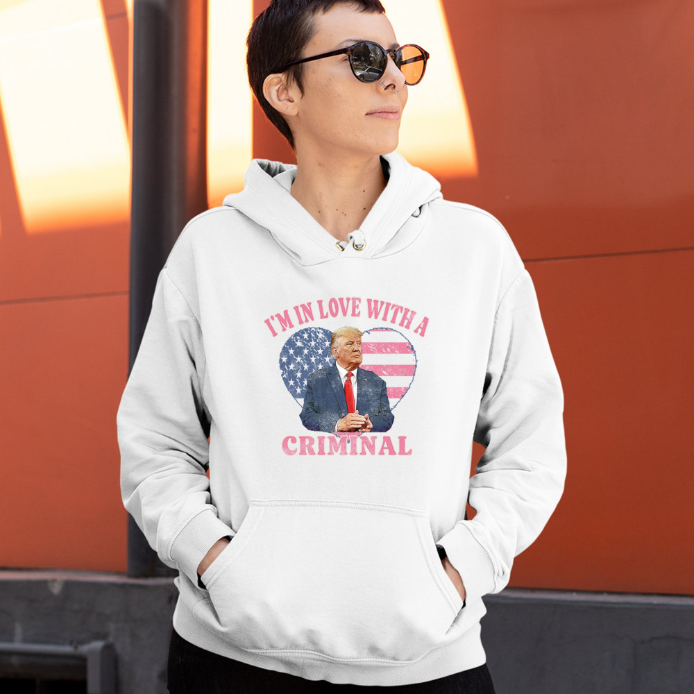 Support Trump with this "I'm in Love with a Criminal" design, embodying conservative values and America First ideals. Perfect for rallies and daily expression.