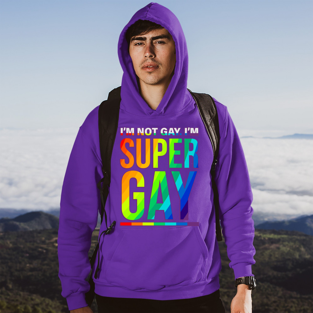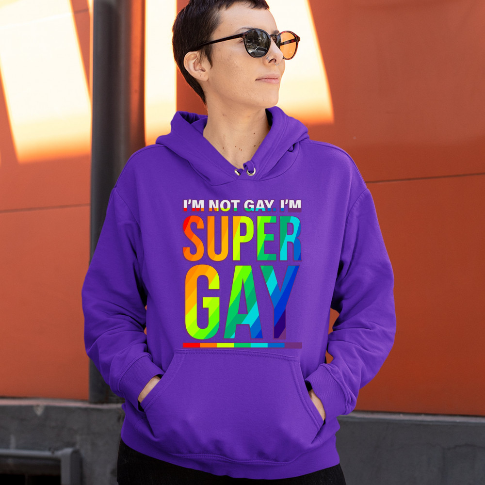 I'M NOT GAY. I'M SUPER GAY sweatshirt funny lgbtq pride positivity hoodie purple