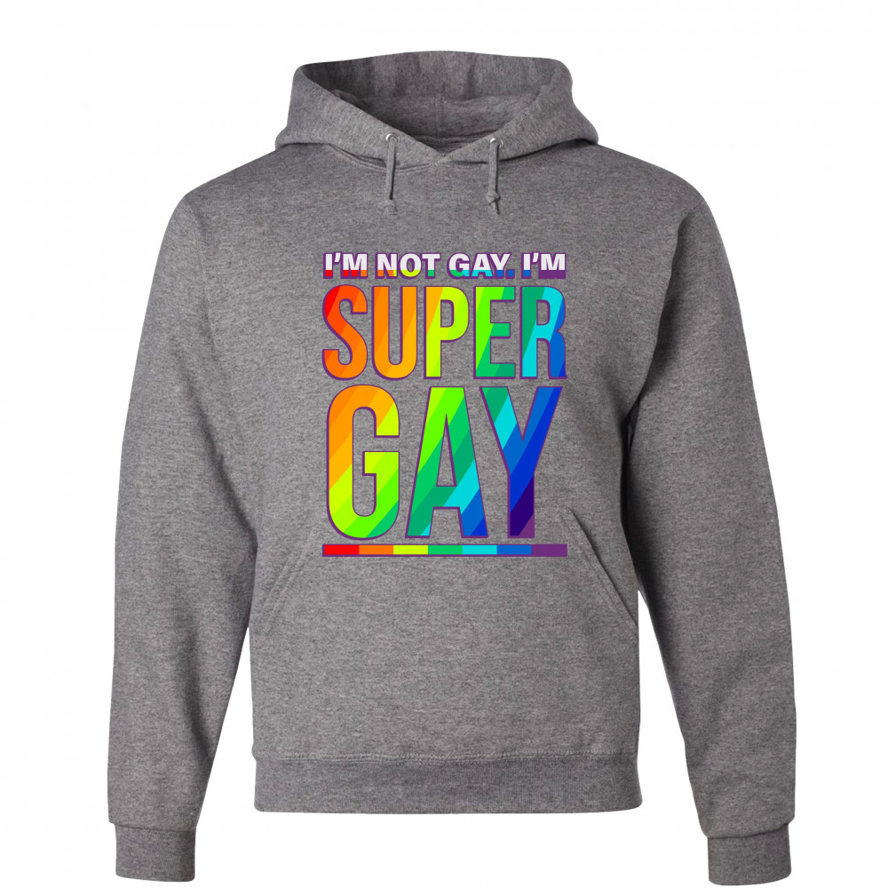 I'M NOT GAY. I'M SUPER GAY sweatshirt funny lgbtq pride positivity hoodie gray