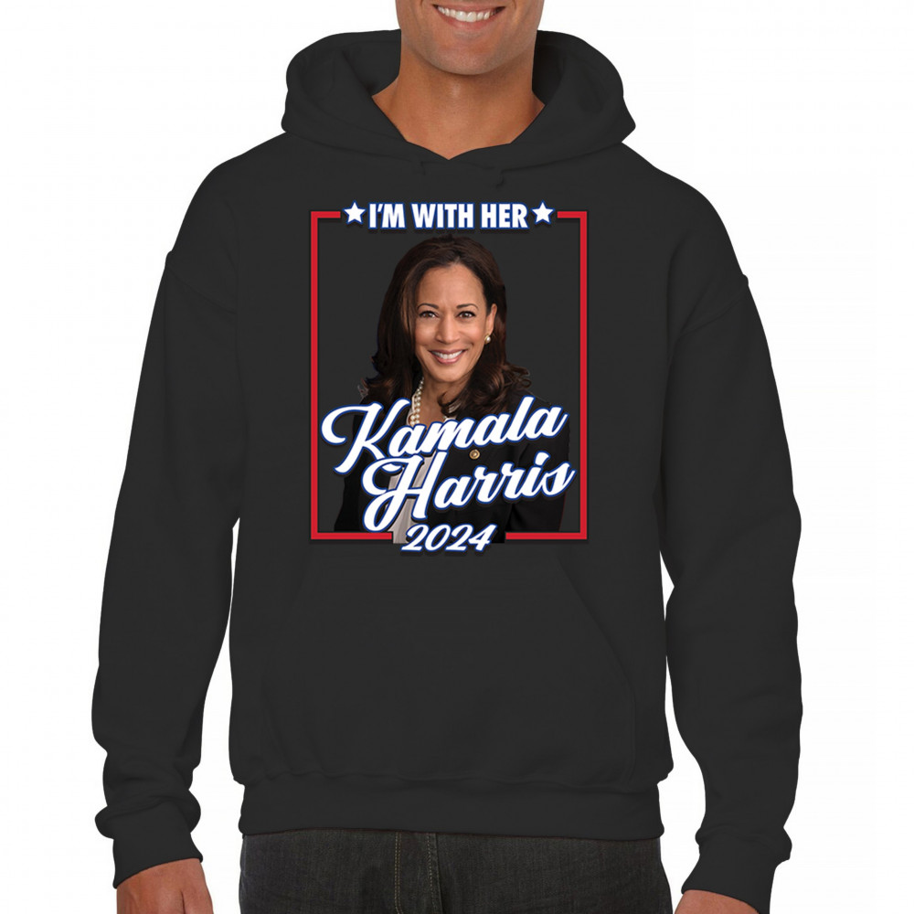 Stand with Kamala Harris in her 2024 presidential campaign with this vibrant design. Highlighting her commitment to progressive causes, this design is perfect for supporters of LGBTQ+ rights, women's rights, and social justice. Featuring the iconic "I'm With Her" slogan, it's a bold statement for anyone who believes in a brighter future. Wear it to rallies, events, or any day to show your support for Kamala Harris and her vision for America. A great addition to any supporter’s collection!