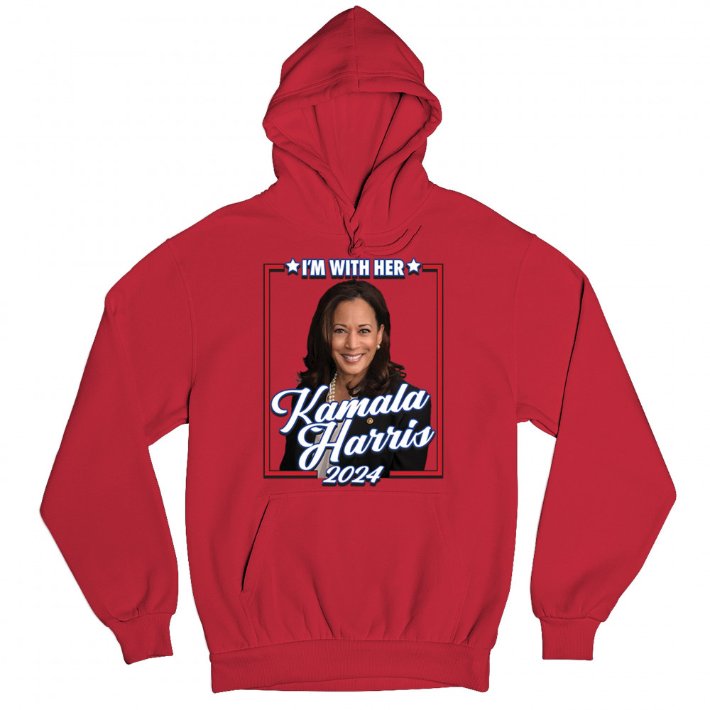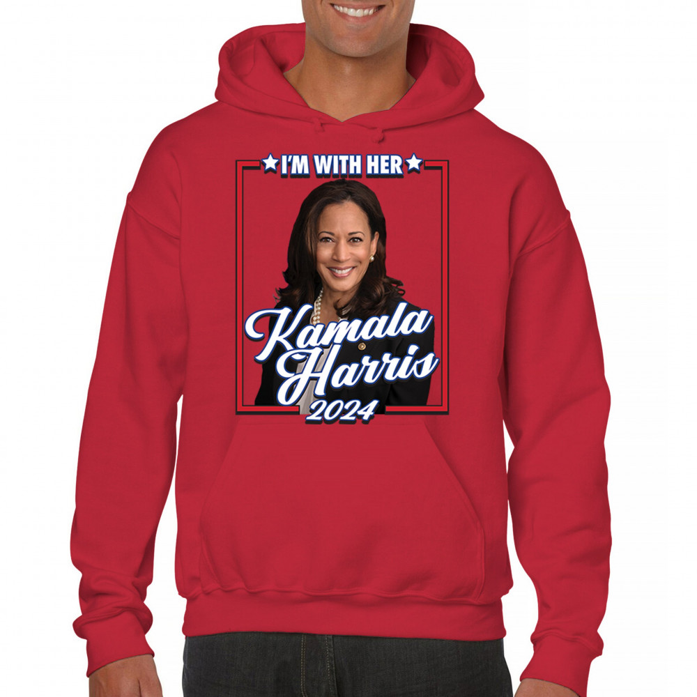 Stand with Kamala Harris in her 2024 presidential campaign with this vibrant design. Highlighting her commitment to progressive causes, this design is perfect for supporters of LGBTQ+ rights, women's rights, and social justice. Featuring the iconic "I'm With Her" slogan, it's a bold statement for anyone who believes in a brighter future. Wear it to rallies, events, or any day to show your support for Kamala Harris and her vision for America. A great addition to any supporter’s collection!