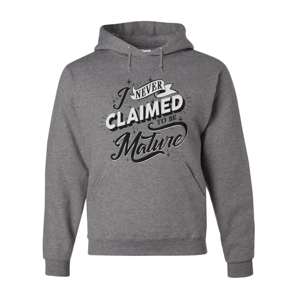 I NEVER CLAIMED TO BE MATURE hoodie funny sarcastic college sweatshirt gray