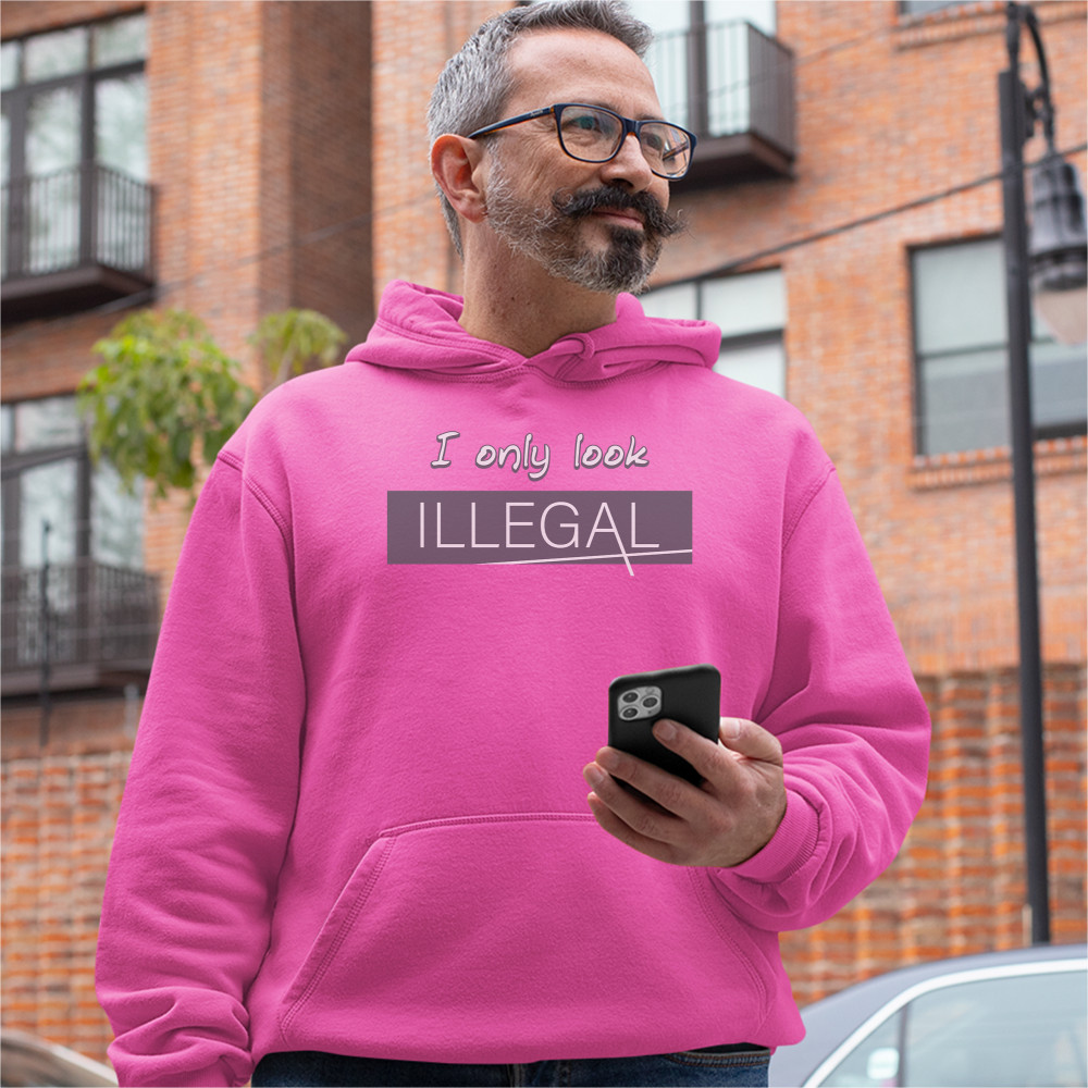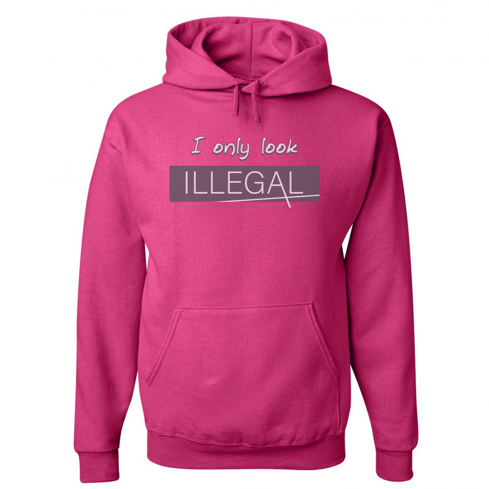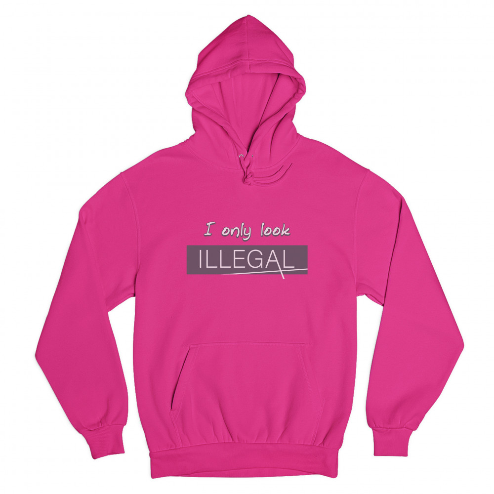 I ONLY LOOK ILLEGAL sweatshirt stop racism pro immigration funny hoodie hot pink