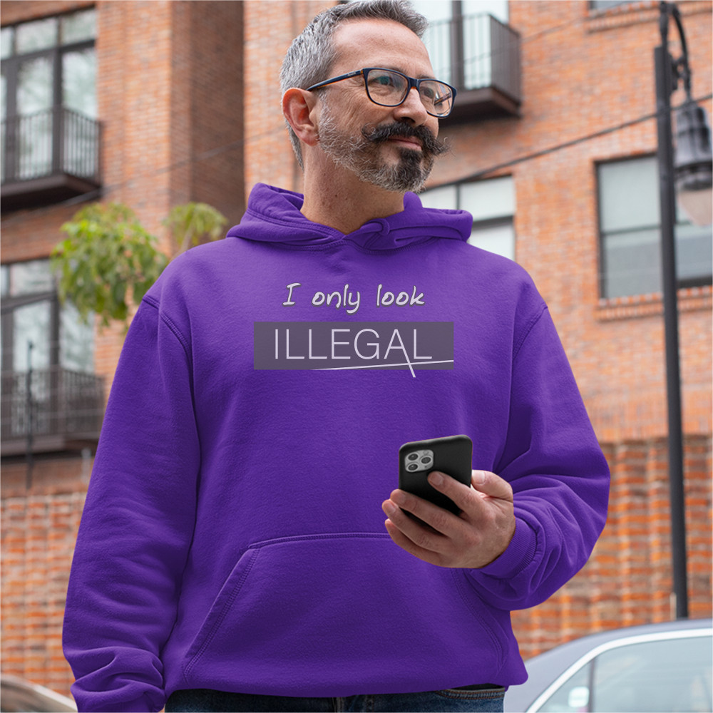 I ONLY LOOK ILLEGAL sweatshirt stop racism pro immigration funny hoodie purple