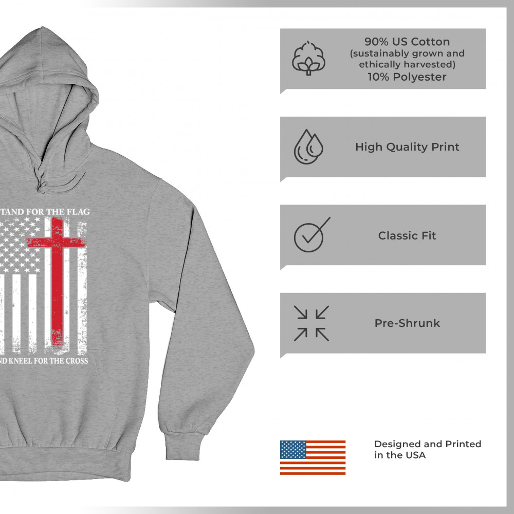 Wrap yourself in the spirit of patriotism and faith with our Stand for the Flag Kneel for the Cross design. This isn't just any Trump shirt—it's a symbol of unwavering support for American values. Featuring the iconic American flag intertwined with the Pu