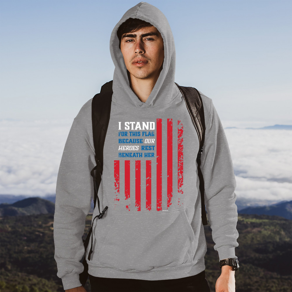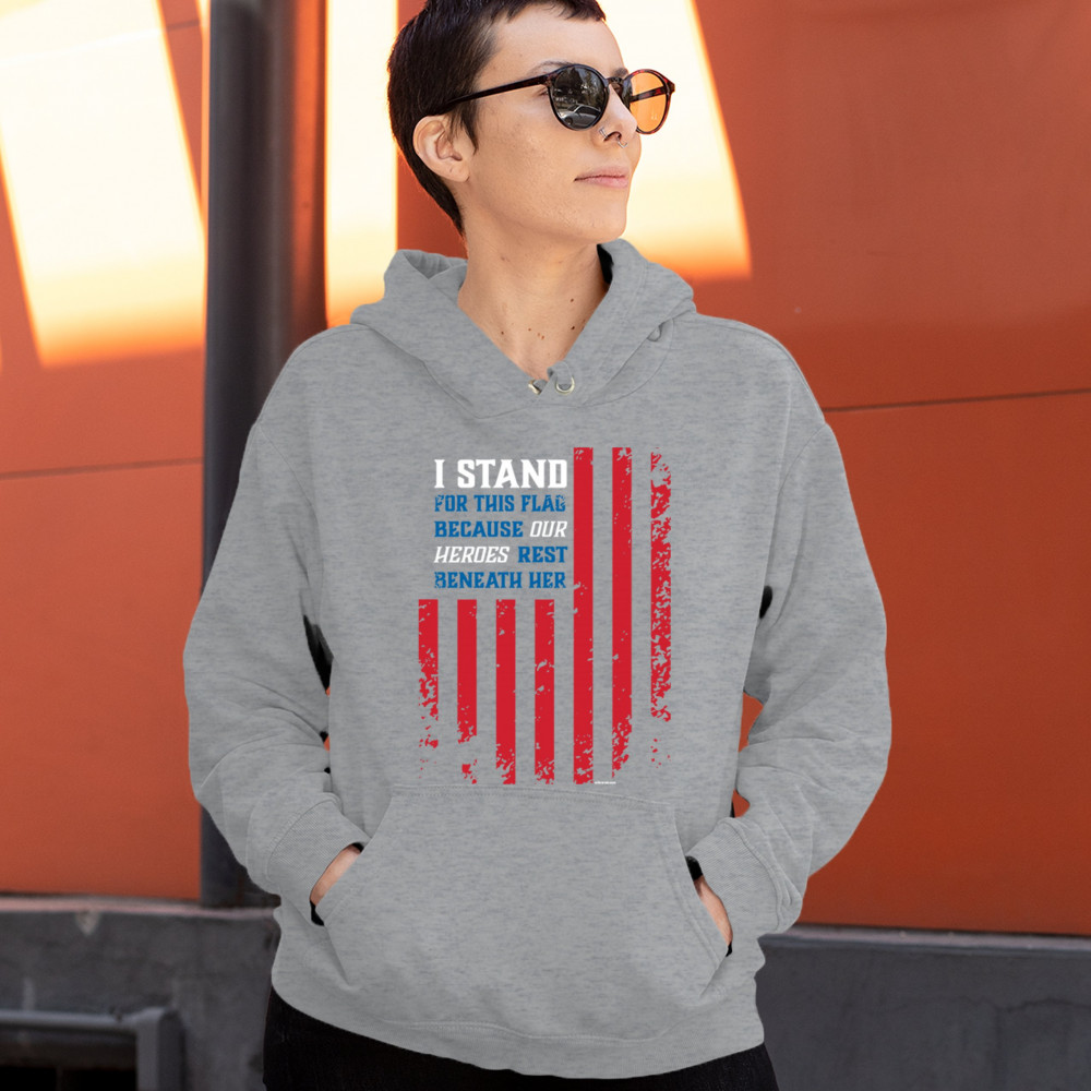 I STAND FOR THIS FLAG sweatshirt patriotic veteran's day american flag hoodie gray