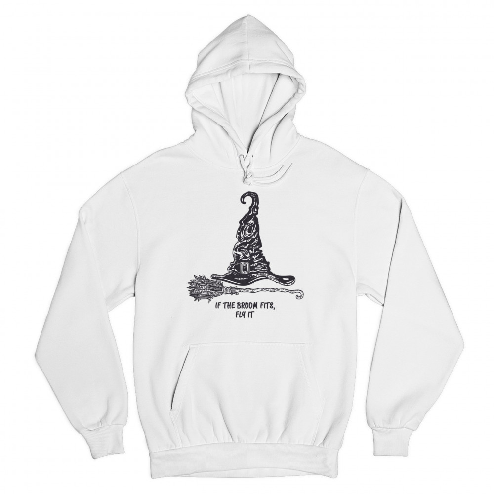 IF THE BROOM FITS, FLY IT sweatshirt funny witch hat halloween hoodie white