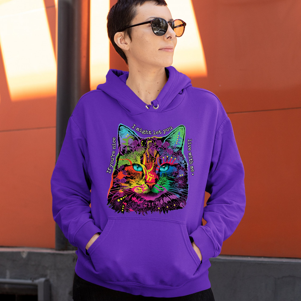 IF YOU'RE NICE I MIGHT LET YOU LIVE WITH ME sweatshirt andy maxx cat hoodie purple