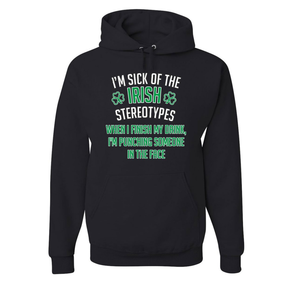 SICK OF THE IRISH STEREOTYPES i'm sick of irish stereotypes hoodie st. patrick's day beer pub sweatshirt black