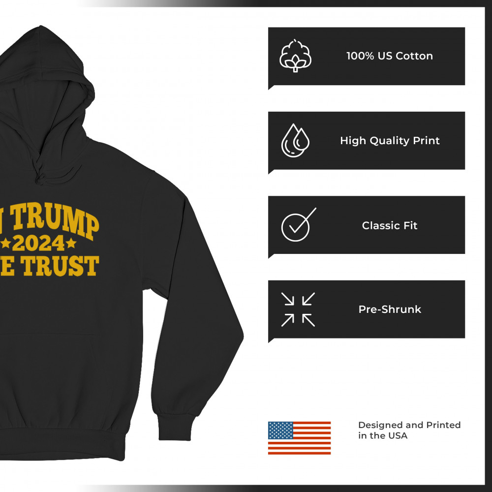 Show your unwavering trust in President Trump with our 'In Trump We Trust 2024' design. Perfect for proud supporters of America first. Join the movement.