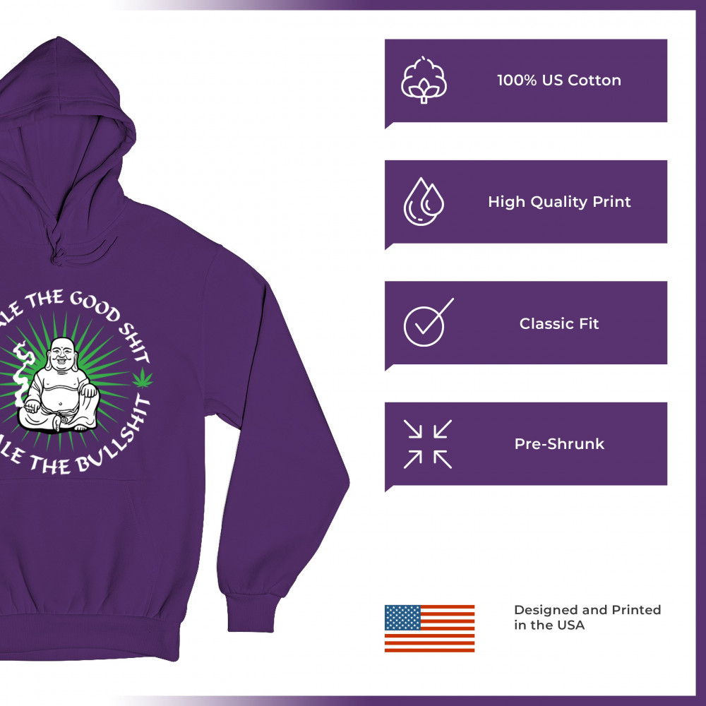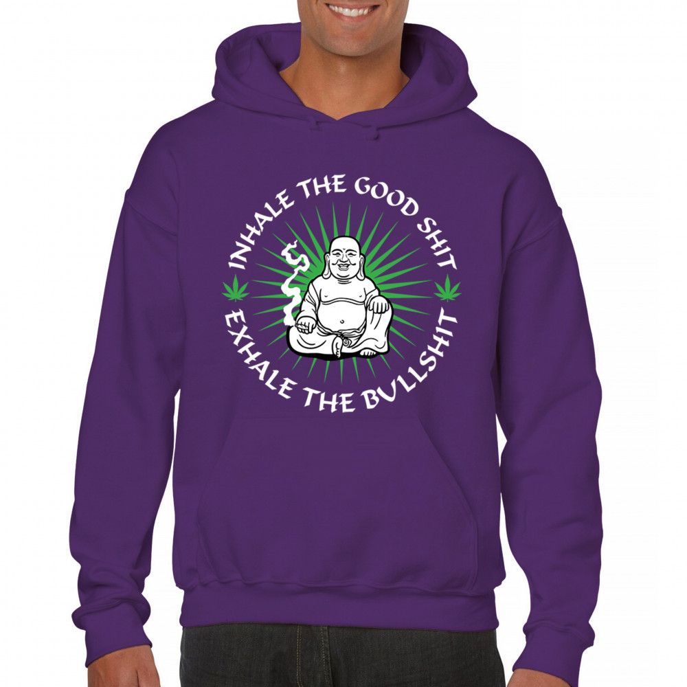 This hilarious and zen-inspired design features a happy Buddha with a joint, surrounded by cannabis leaves. “Inhale the Good Shit, Exhale the Bullshit†delivers chill stoner wisdom with a wink. Ideal for mindful marijuana lovers, 420 fans, or spiritual rebels with a sense of humor and a love for weed.