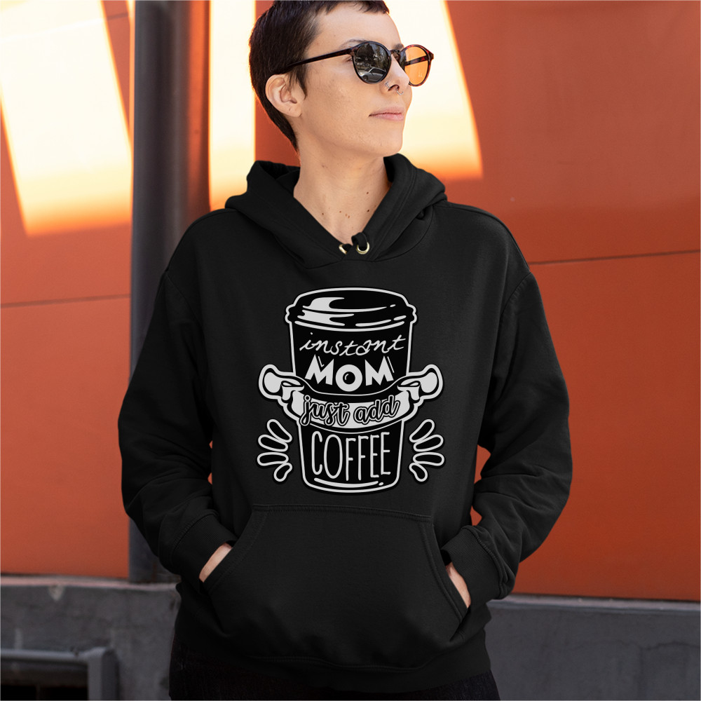 INSTANT MOM JUST ADD COFFEE sweatshirt funny mother's day mom life hoodie black
