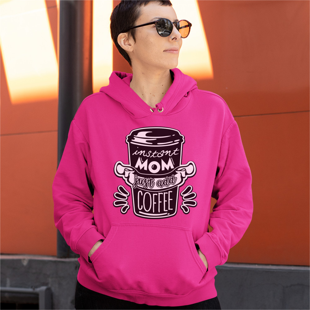 INSTANT MOM JUST ADD COFFEE sweatshirt funny mother's day mom life hoodie hot pink