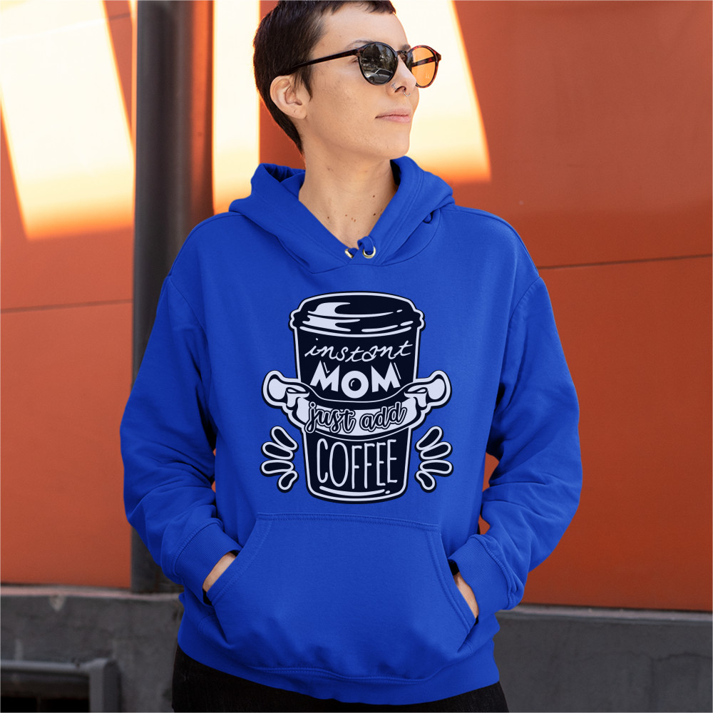 INSTANT MOM JUST ADD COFFEE sweatshirt funny mother's day mom life hoodie royal blue