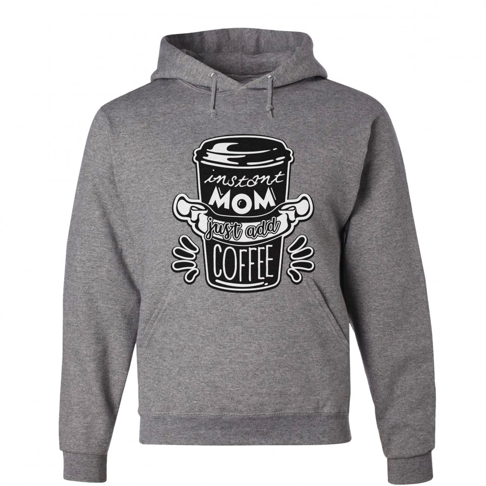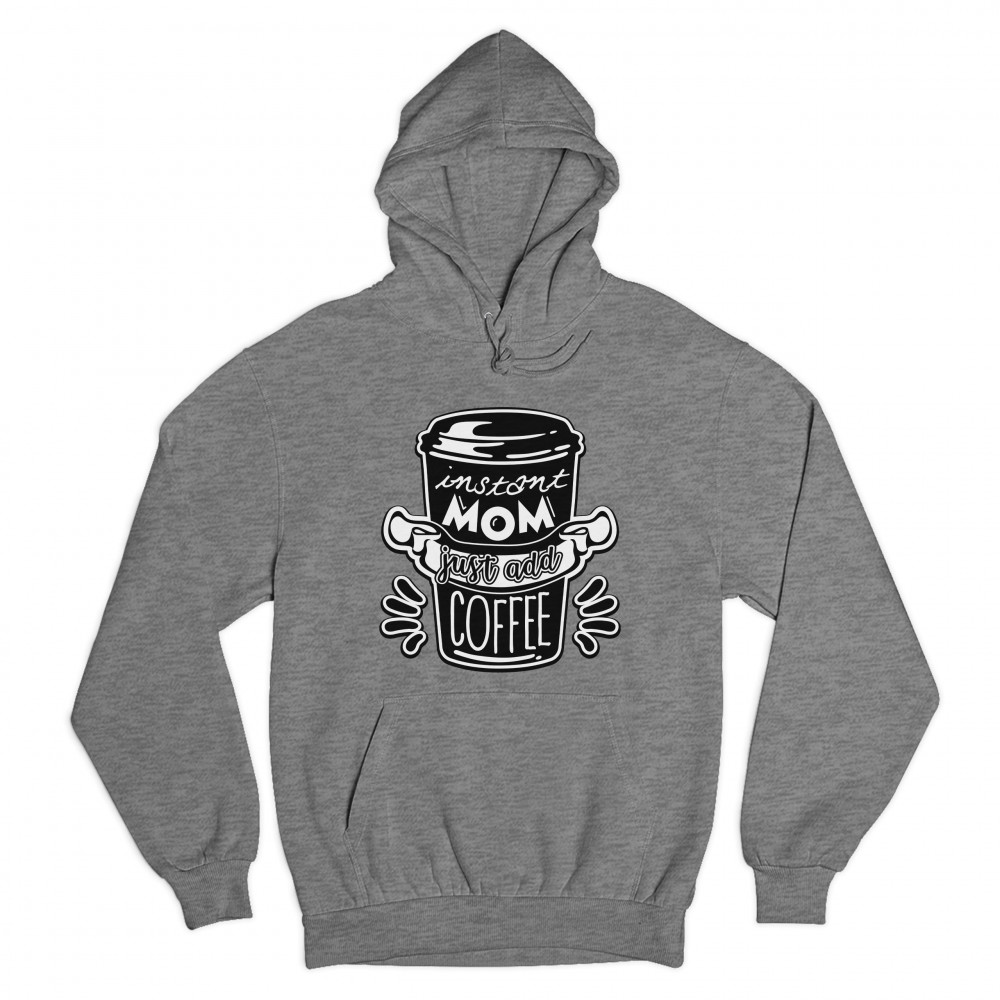INSTANT MOM JUST ADD COFFEE sweatshirt funny mother's day mom life hoodie gray