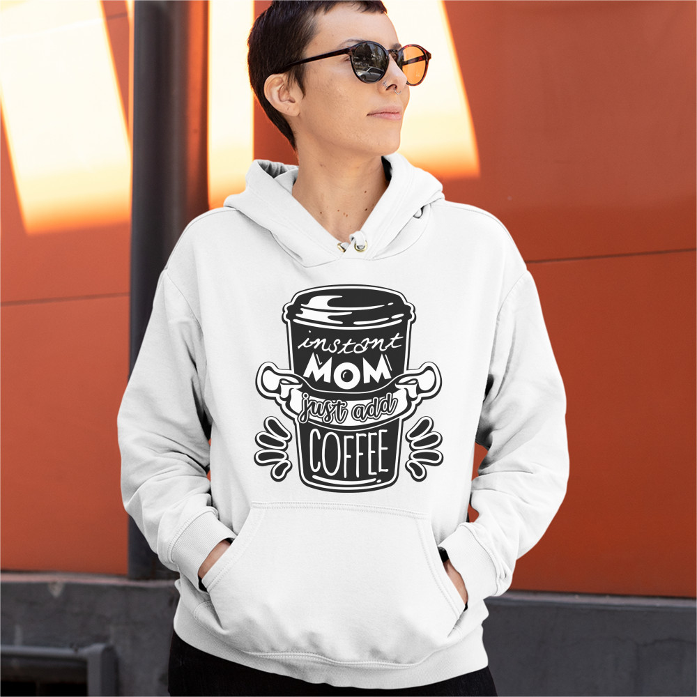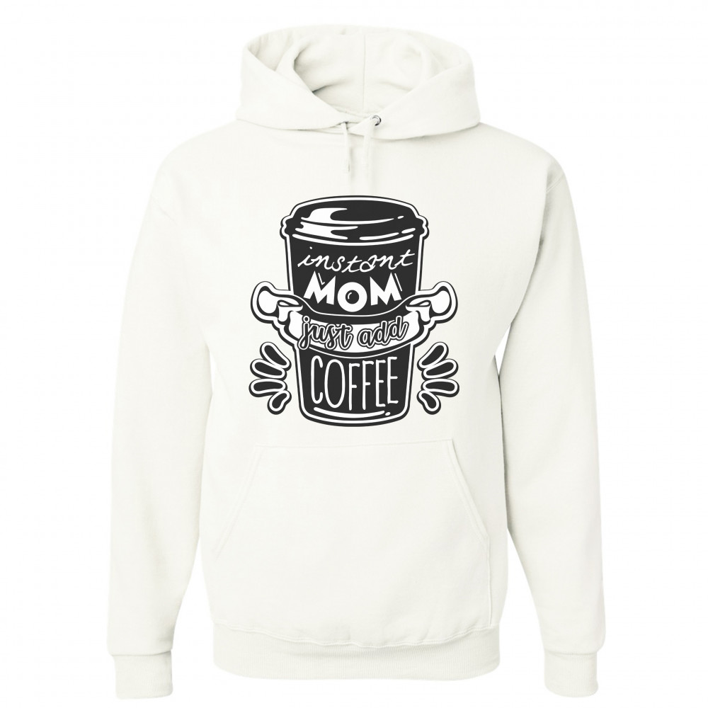 INSTANT MOM JUST ADD COFFEE sweatshirt funny mother's day mom life hoodie white