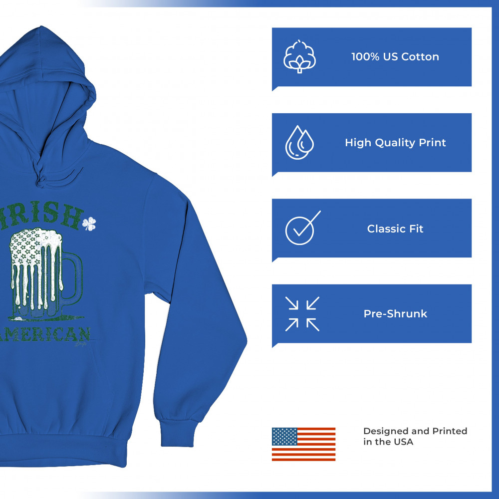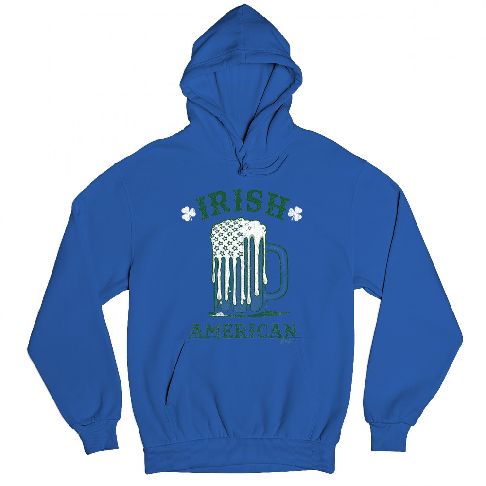 IRISH AMERICAN ST PATRICK'S DAY sweatshirt shamrock shenanigans beer hoodie royal blue