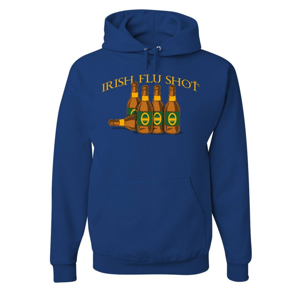 IRISH FLU SHOT FUNNY hoodie st patrick's day pubs drinking beer sweatshirt royal blue
