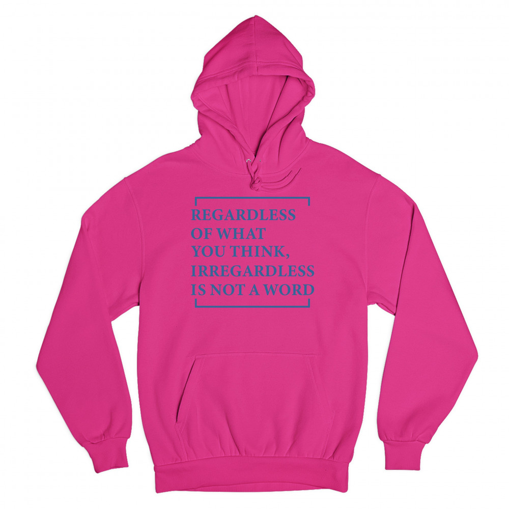 IRREGARDLESS IS NOT A WORD sweatshirt funny english grammar hoodie pink