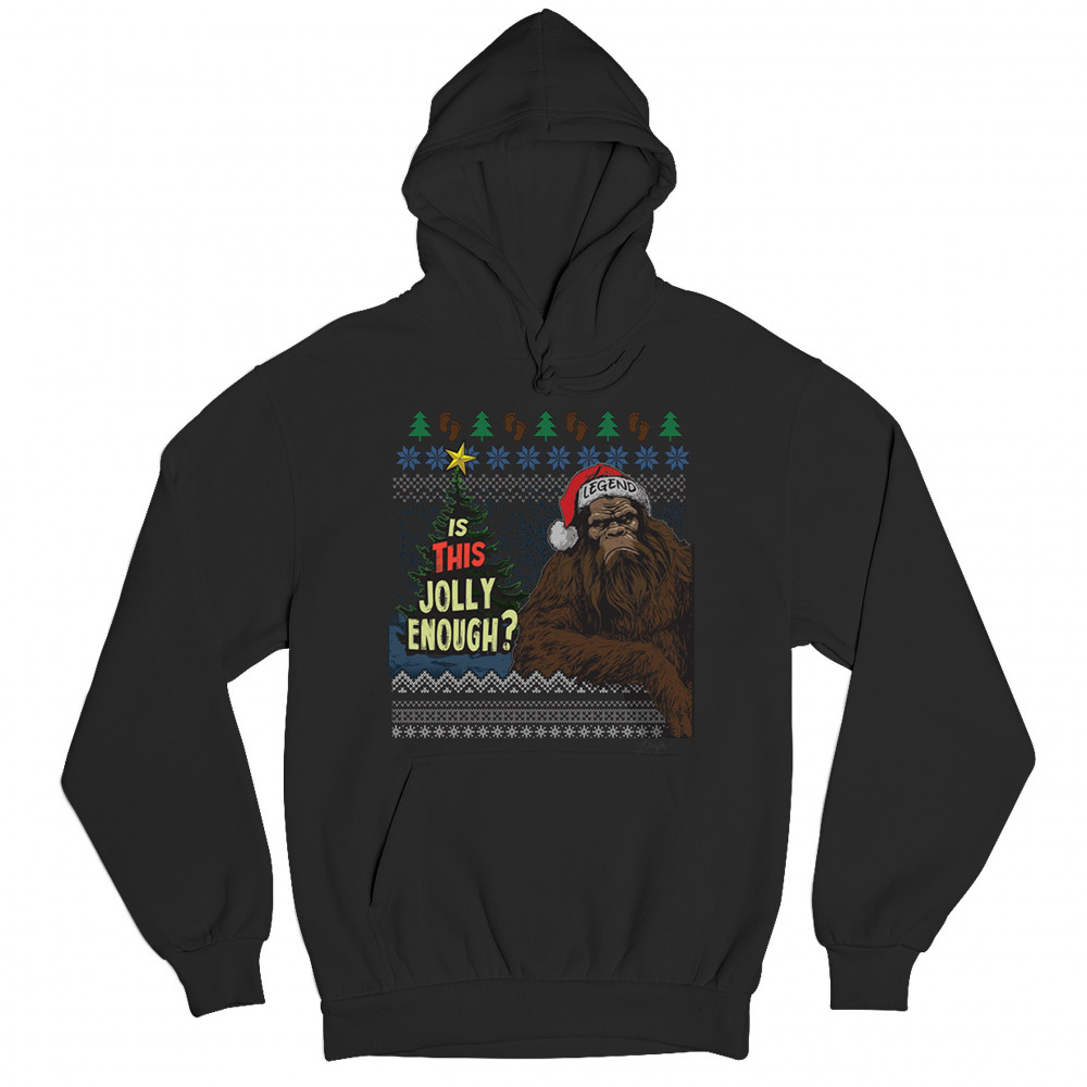 IS THIS JOLLY ENOUGH BIGFOOT CHRISTMAS sweatshirt funny sasquatch xmas hoodie black