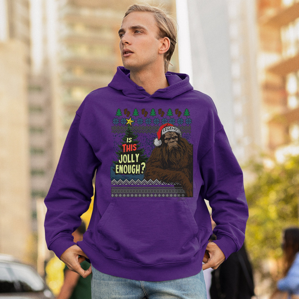 IS THIS JOLLY ENOUGH BIGFOOT CHRISTMAS sweatshirt funny sasquatch xmas hoodie purple