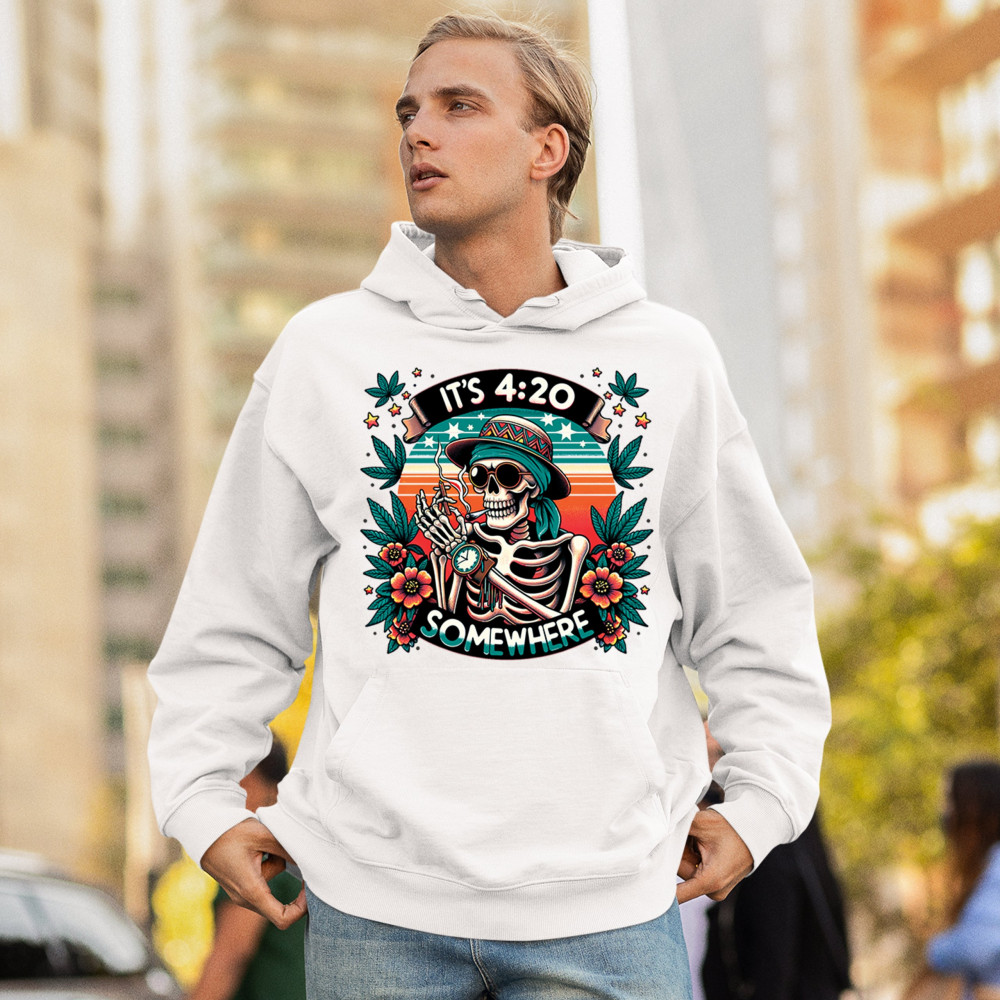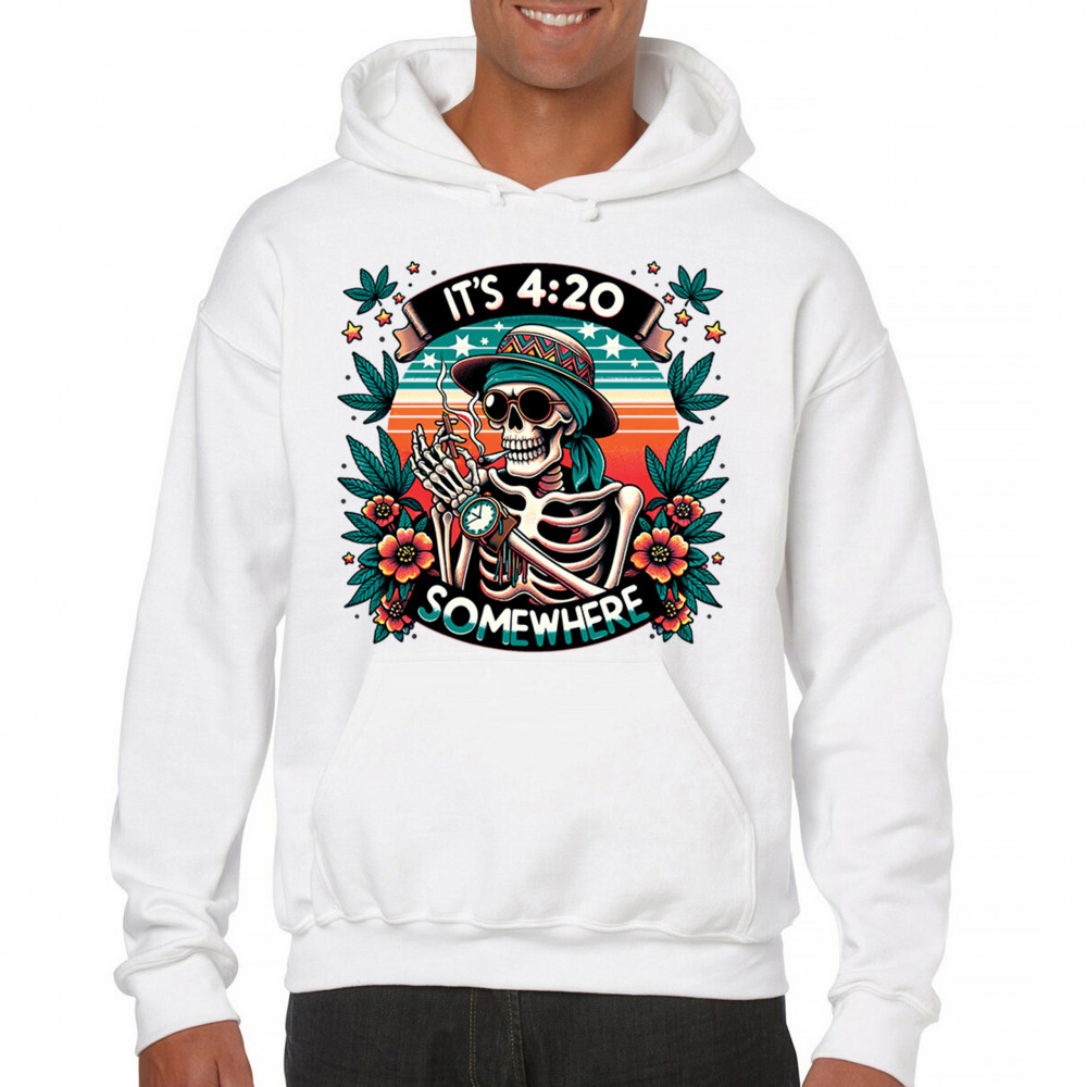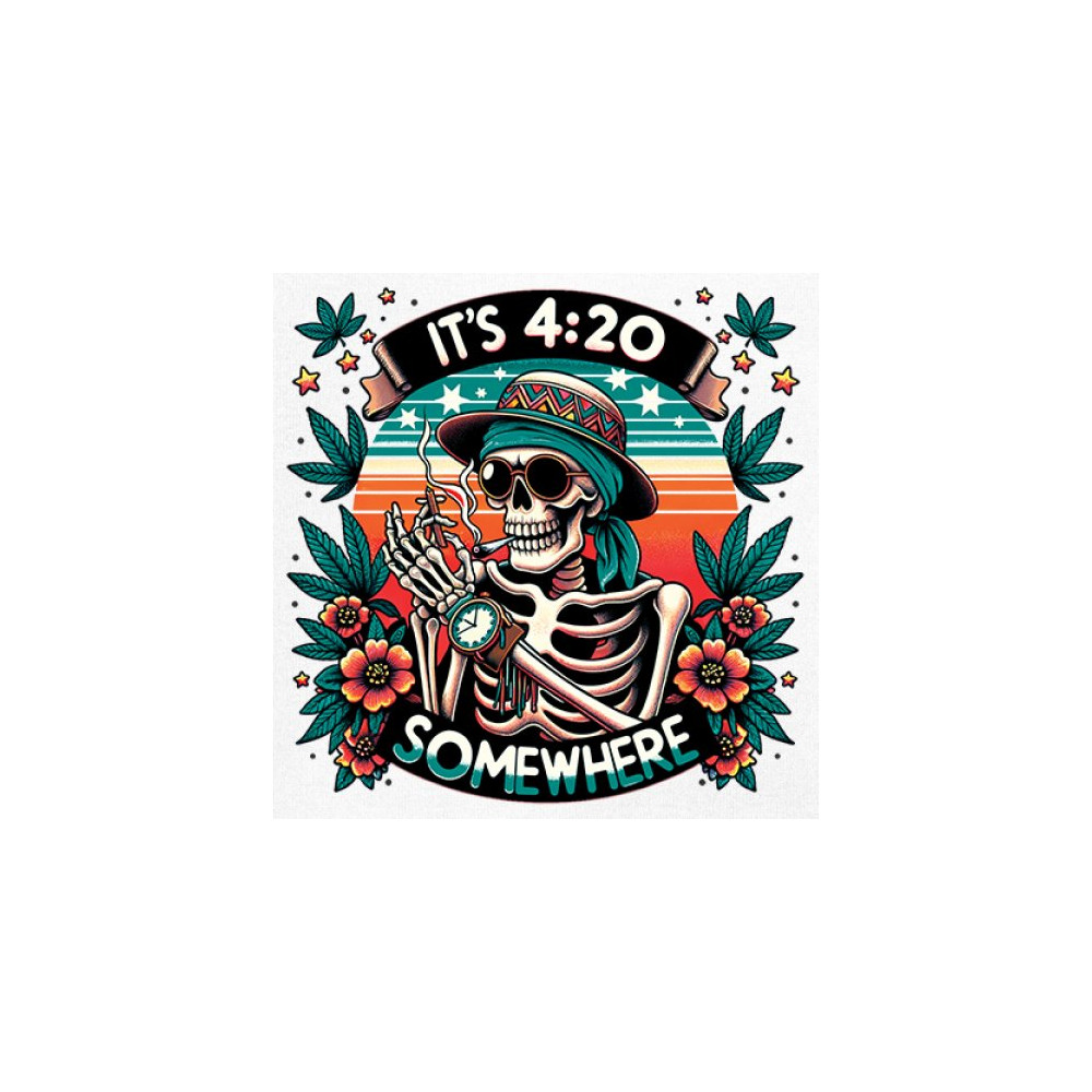 Get lifted with this “It’s 4:20 Somewhere†design featuring a joint-smoking skeleton, tropical sunset, and Deadhead stoner vibes. With bold trippy colors and beachy weed art, this tee is perfect for April 20 parties, summer festivals, and cannabis lovers living the high life.